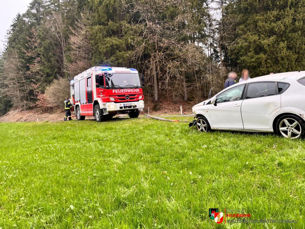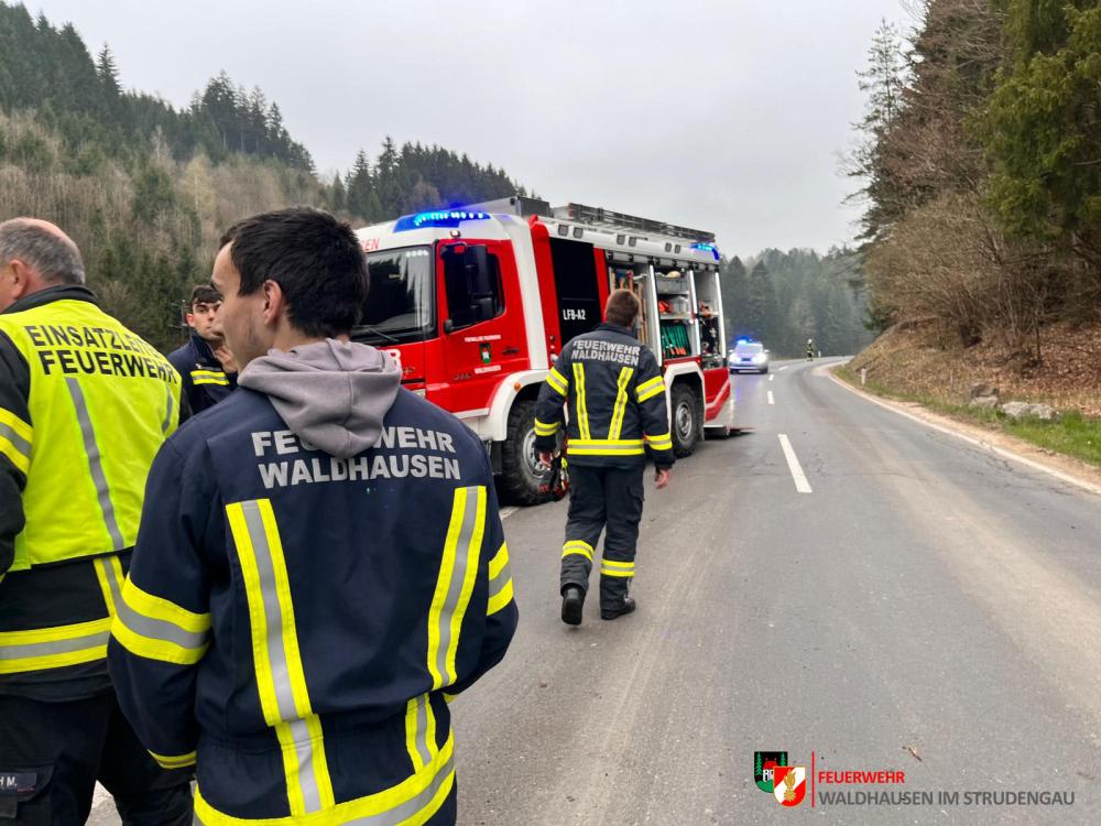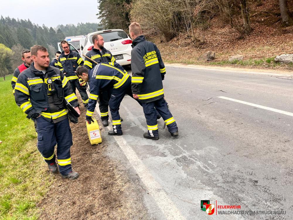 Am 14. April wurden wir um 16:58 Uhr zu Verkehrsunfall Aufräumarbeiten "PKW im Bach" alarmiert. Als Ersteintreffender am Einsatzort, sperrten wir umgehend die Straße ab und regelten den Verkehr. Das Rote Kreuz Waldhausen traf unmittelbar nach uns ein und übernahm sofort die Betreuung des verletzten Lenker, welcher sich selbstständig aus dem Fahrzeug befreit hatte. Wir stellten fest, dass eine geringe Menge an Betriebsmittel aus dem Fahrzeug floß und so errichteten wir umgehend eine Ölsperre über den Dimbach. Um die Ausbreitungsgefahr vollständig zu verhindern zogen wir den PKW möglichst rasch aus dem Bach. Anschließend unterstützten wir den örtlichen Abschleppdienst beim Verladen des Fahrzeuges und verständigten die Straßenmeisterei. Eingesetzte Fahrzeuge: KDOF-A LFB-A2 TLF-A2000 Eingesätzte Kräfte: FF Waldhausen RK Waldhausen 2x Polizei Grein Straßenmeisterei Grein