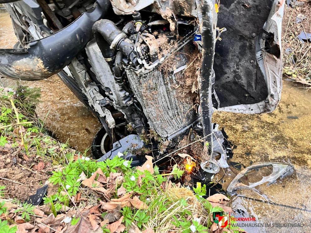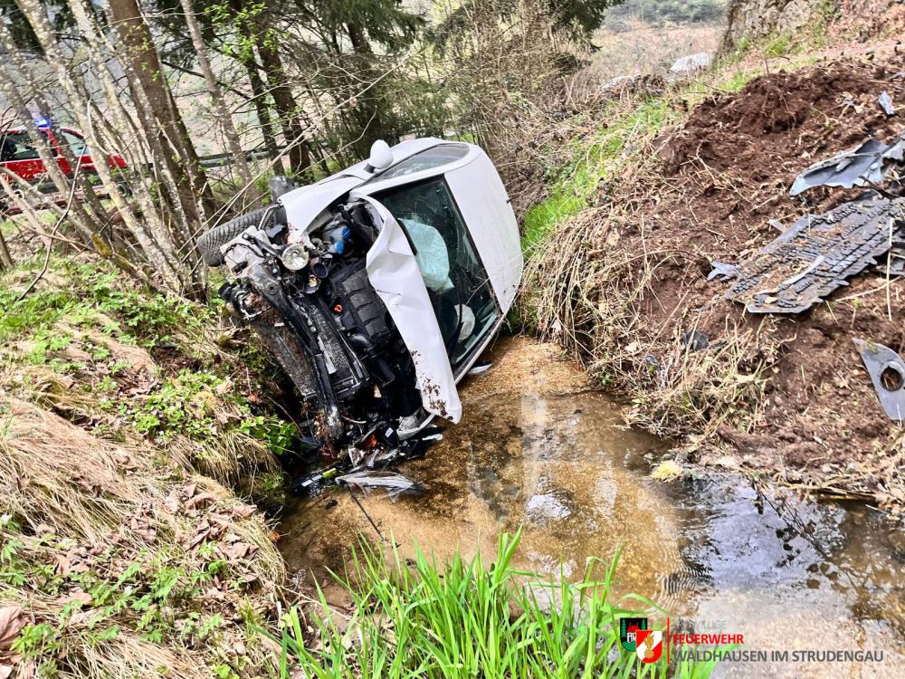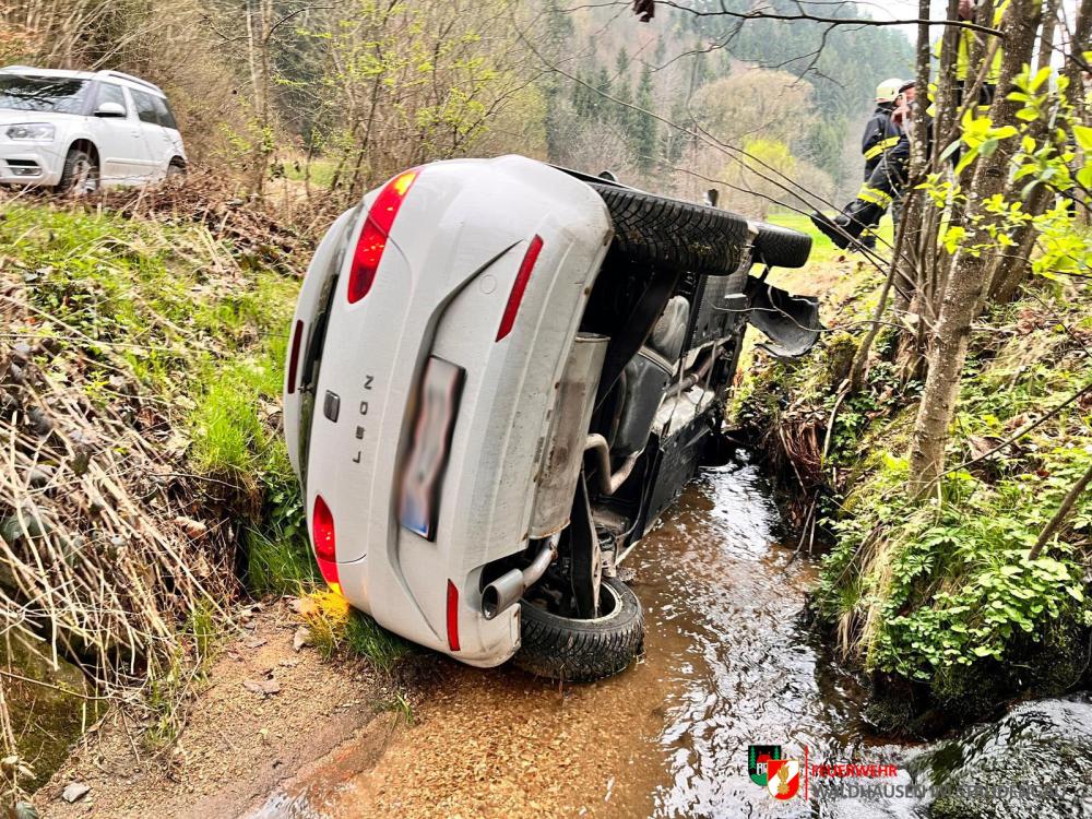 PKW bei L1436 Langenbachstraße im Bach gelandet...