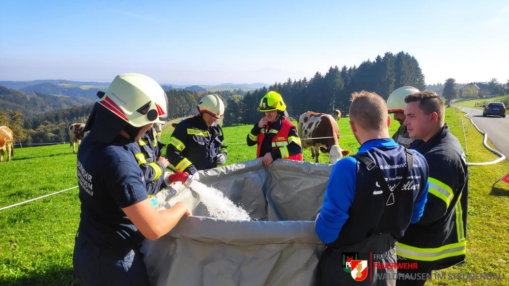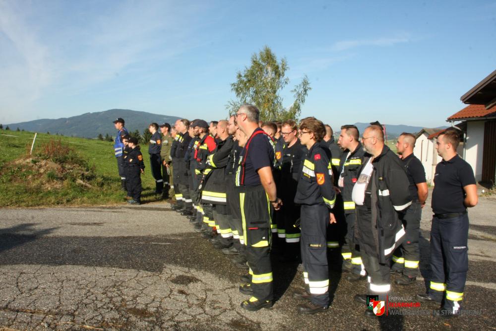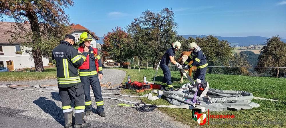 Brandverdacht landwirtschaftliches Objekt, zwei Kinder werden vermisst lautete die Alarmierung. Daher rückten wir mit unserem TLF A-2000 und 9 Kameraden, davon 3 Atemschutzträger, zum Einsatz (in Nöchling, Gulling) aus. Nach 17 Minuten sind wir bereits am landwirtschaftlichen Anwesen eingetroffen und der Atemschutztrupp wurde direkt ins Gebäude geschickt. 10 Minuten später konnten unsere Atemschutzträger bereits beide Kinder retten und in Sicherheit bringen . Derweil stellten die anderen Kameraden die Wasserversorgung mittels aufstellbarem Falttank sicher. Über 450m Versorgungsleitung wurde vom Nöchlinger Badesee gelegt. Dafür standen drei Pumpen im Relais - Betrieb im Einsatz. 2 Tauchpumpen versorgten vom Falttank aus, das Tanklöschfahrzeug der Nöchlinger Florianis. Nach etwa 2 Stunden wurde die Übung beendet und die Erfahrungen sowie Verbesserungsvorschläge übermittelt. Zu guter Letzt wurden wir noch ins Feuerwehrhaus zu einer Jause eingeladen. Danke an unsere niederösterreichischen Kameraden für die Übungsvorbereitung der länderübergreifenden Übung.
