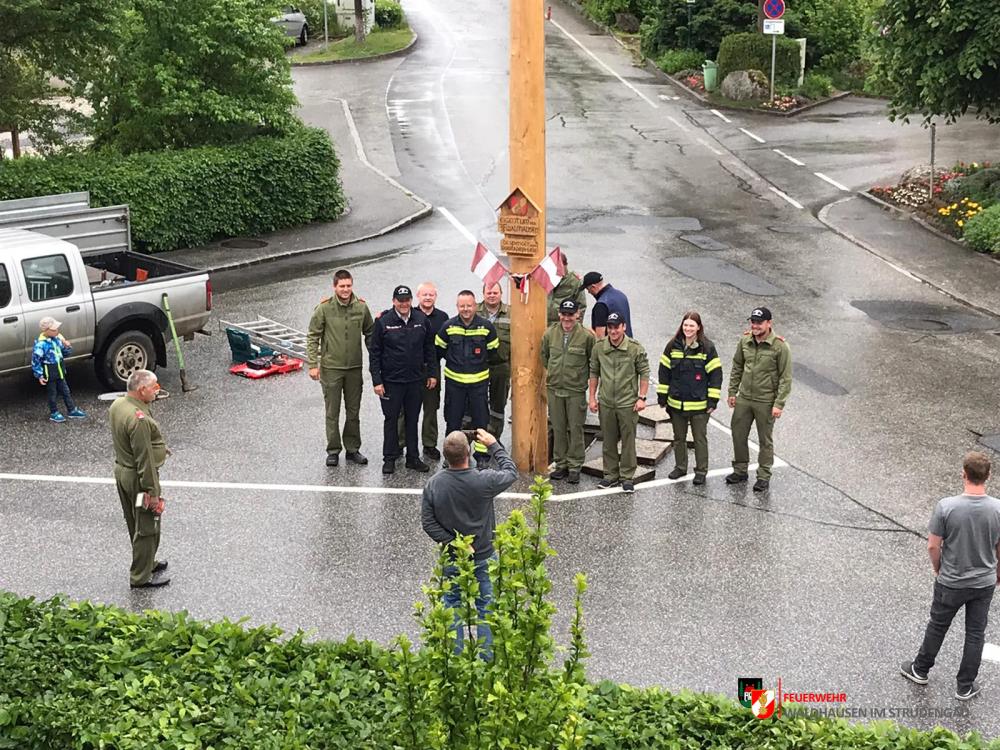 Am 29. Mai 2022 legten wir, doch noch glücklicherweise selbst, unseren Maibaum um. In den ersten Maitagen hatten nämlich unbekannte Maibaumdiebe versucht unseren Maibaum zu stehlen, E-AW Hofstetter Karl konnte dies verhindern. Daher konnte der Baum nun verlost werden. Die Gewinnerin Frau Martina Koch spendete diesen an unsere Feuerwehr, Vielen Dank! Ein großes Dankeschön an das Domkapitel Linz für die Baumspende.