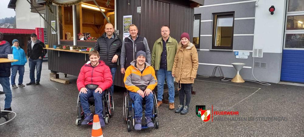 Am 23.12.2022 durfte die Freiwillige Feuerwehr Waldhausen einen Glühweinstand für den guten Zweck bei der Firma Gmeiner veranstalten. Trotz unbeständigem Wetter durften wir uns über viele BesucherInnen und freiwillige Spenden freuen. Es war uns deshalb möglich am 28.12.2022 einen Scheck in Höhe von 400 Euro an Nick und Christian Jurik zu überreichen und somit einen Beitrag zum benötigten Treppenlift zu leisten. Die übrigen freiwilligen Spenden kommen unserer Feuerwehrjugend zugute. Denn auch hier müssen, um die Zukunft der Freiwilligen Feuerwehr Waldhausen zu sichern, Kosten für Ausrüstung, Bekleidung, Ausbildung und Freizeitaktivitäten gedeckt werden. Die FF Waldhausen möchte sich auf diesem Wege bei allen für den Besuch beim Glühweinstand bedanken! Vielen Dank auch an die Firma Gmeiner und den fleißigen Helfern die das möglich gemacht haben!