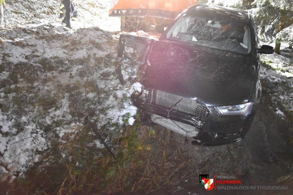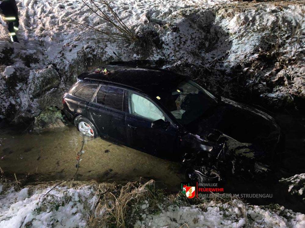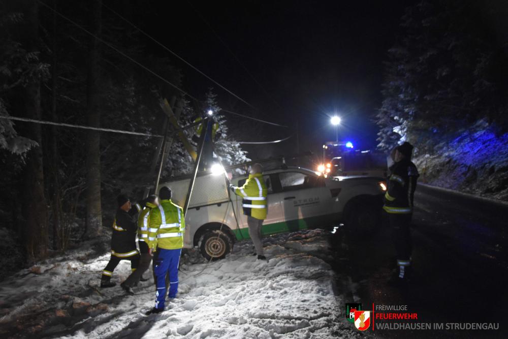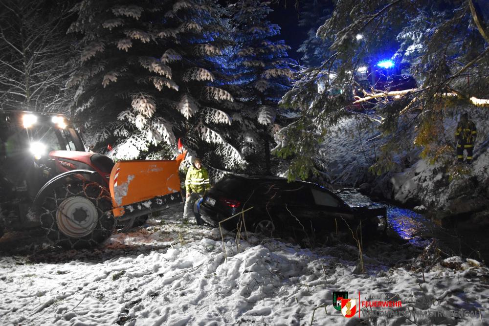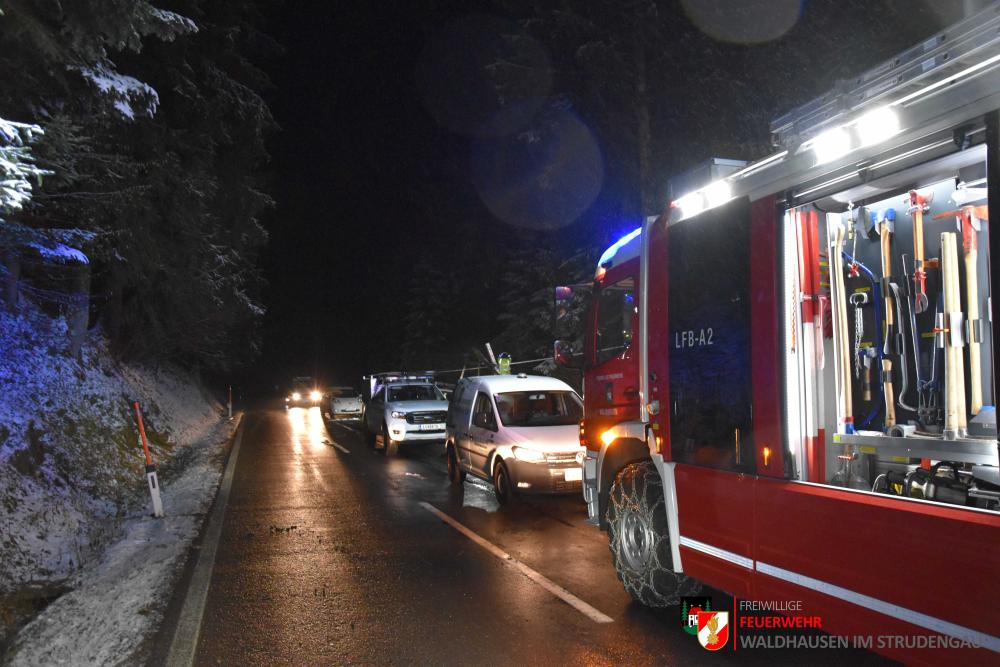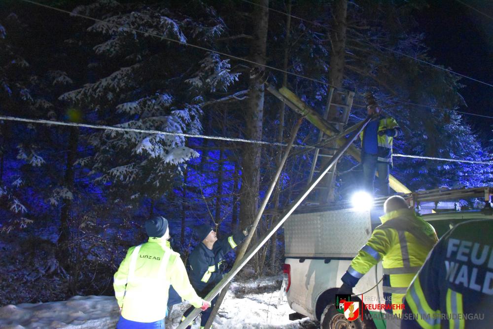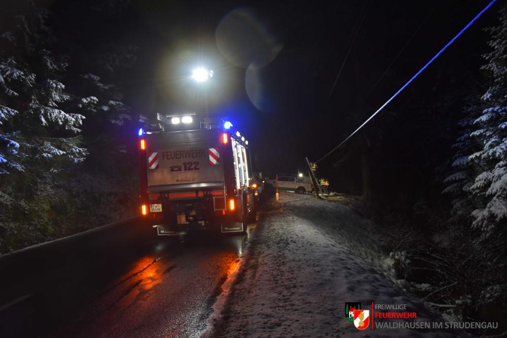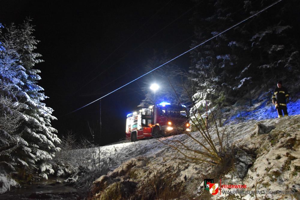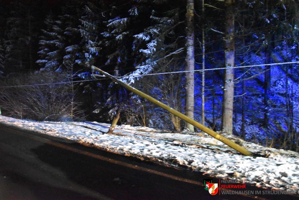 Am 28. Jänner wurden wir telefonisch über eine Fahrzeugbergung auf der L1436 (km 4,6) alarmiert. Auf der Ebblinger Gerade war ein PKW von der Straße abgekommen, durchstieß einen Strommast und landete schlussendlich im Bach. Nach der Abschaltung der Stromleitung durch die LinzAG, konnte mit den Bergearbeiten begonnen werden. Mithilfe einer Traktorseilwinde konnte der verunfallte PKW auf den gegenüberliegenden Weg gezogen und vom Abschleppdienst abtransportiert werden. Eingesetzte Fahrzeuge: LFB-A2