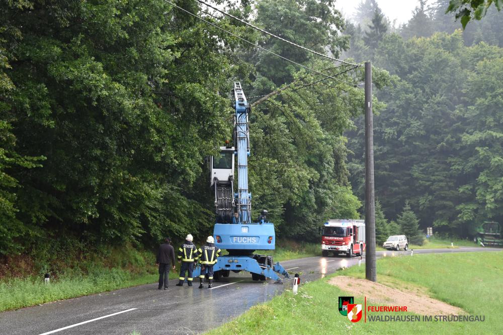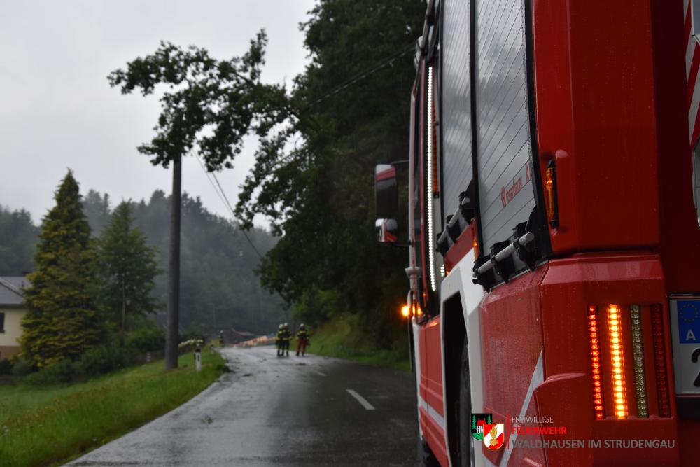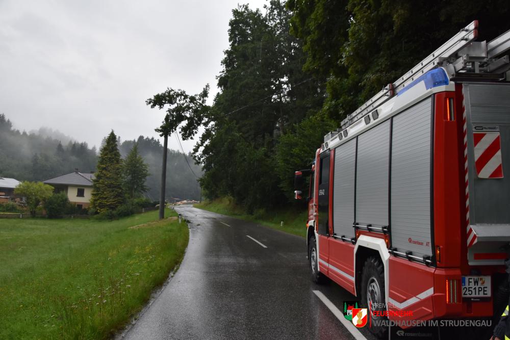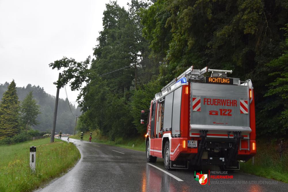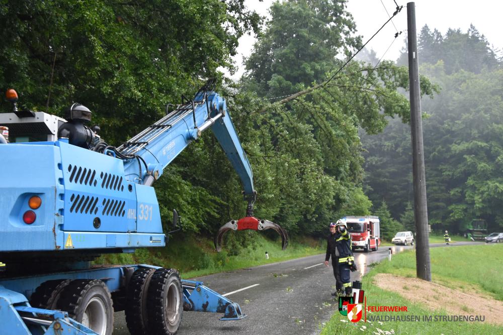 Am frühen Vormittag des 26. Juli wurden wir über einen Baum informiert, welcher in eine Stromleitung direkt über der L575 Sarmingstraße gefallen ist. Dadurch machten wir uns auf den Weg, um die Straße für den Verkehr abzusichern. Mit Unterstützung des nahegelegenen Sägewerks konnte der abgebrochene Baum von der Leitung gehoben und abgeschnitten werden. Nach kurzer Zeit konnte die Straße wieder vollständig für den Verkehr freigemacht werden. Eingesetzte Fahrzeuge: LFB-A2