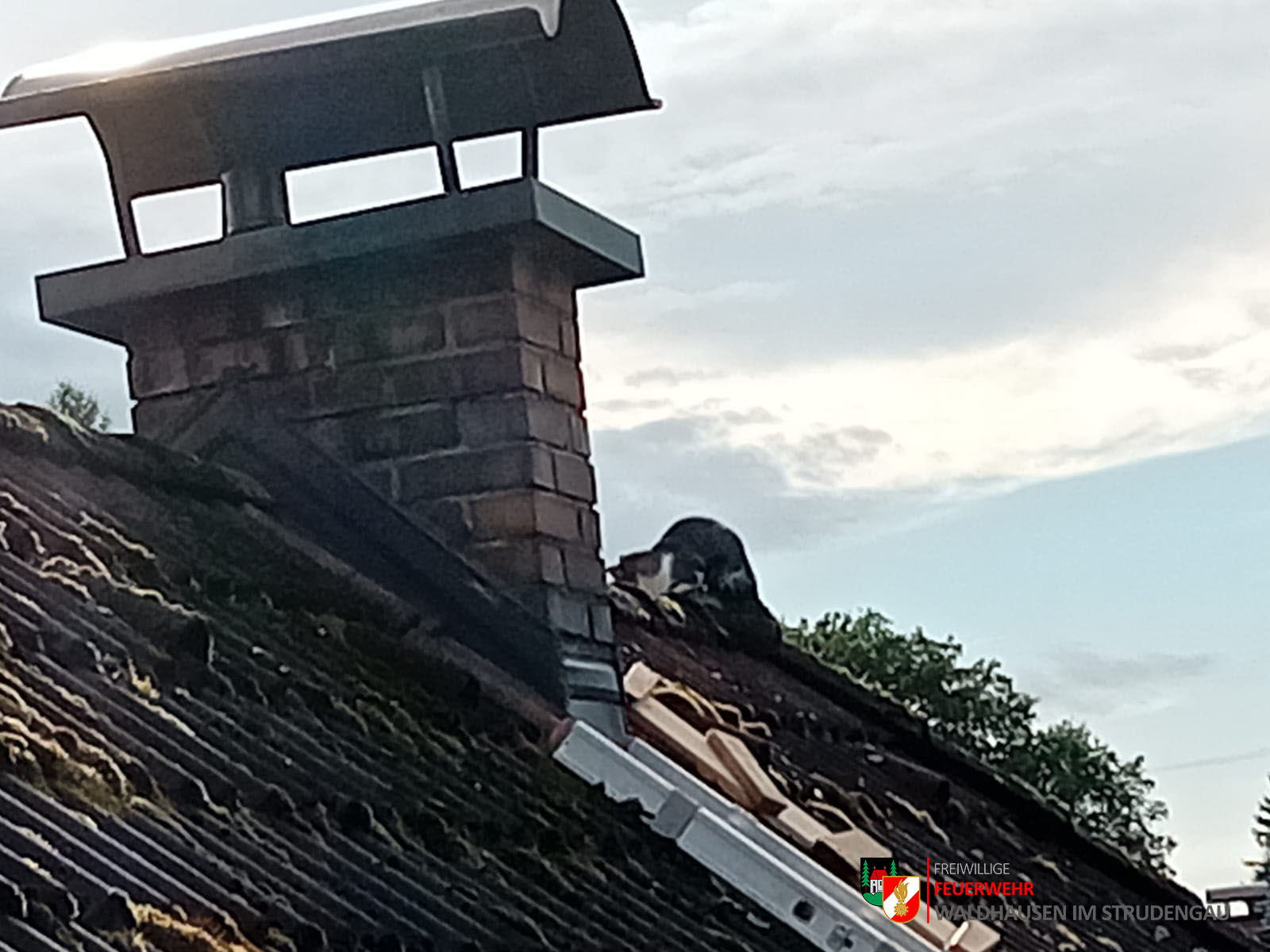 Am Freitag dem 01. August wurden wir telefonisch über eine Tierretung in der Ortschaft Gloxwald informiert. Eine Katze war schon seit mehreren Tagen am Dach und konnte laut Anrufer dieses nicht mehr selbständig verlassen. Daher rückten wir aus, um mit der Leiter das Haustier zu retten. Durch unser beherztes Eingreifen konnte die Katze rasch gerettet und den Besitzern übergeben werden. Eingesetzte Fahrzeuge: LFB-A2