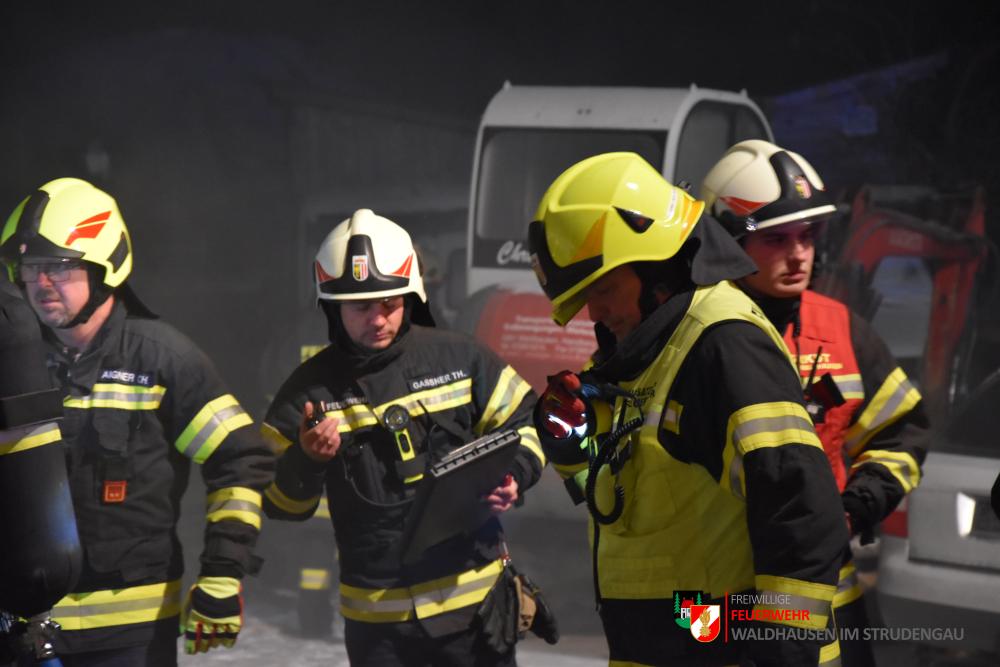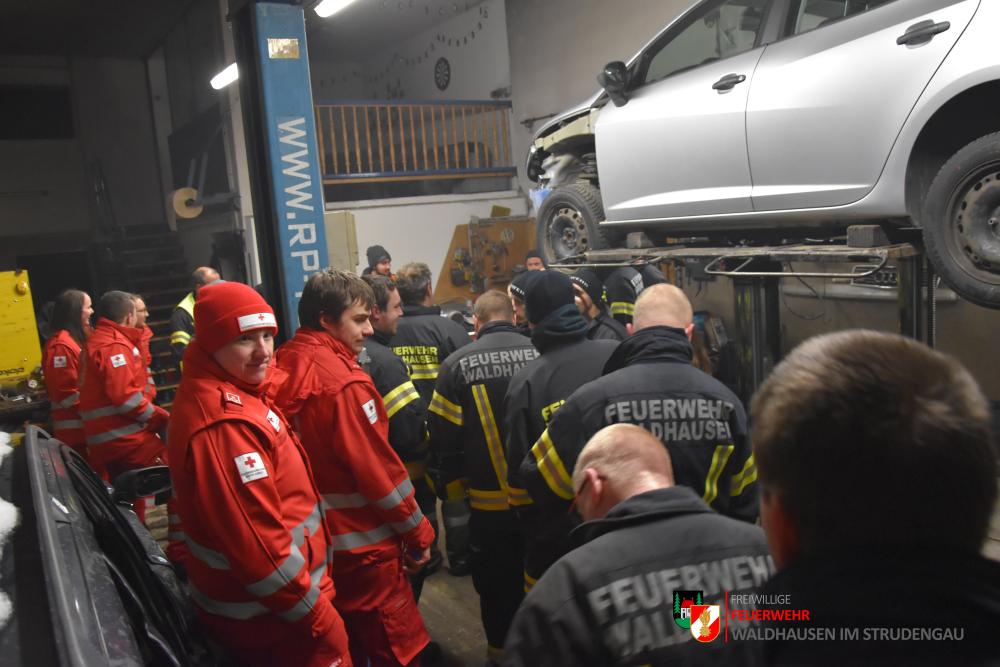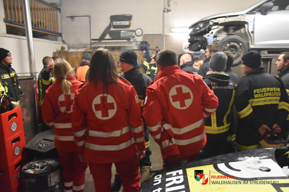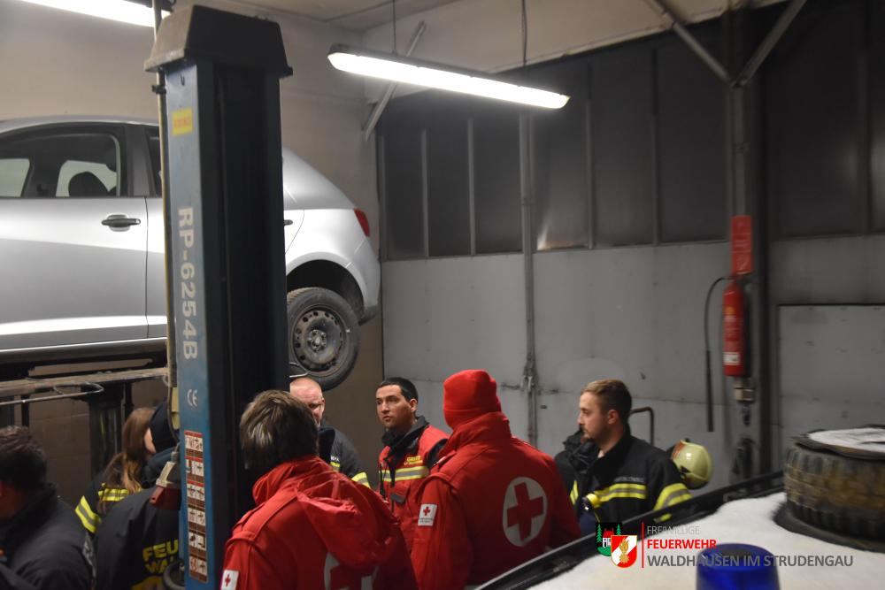 Am Freitag, dem 28.11. fand eine äußerst spannende Übung gemeinsam mit dem roten Kreuz Waldhausen statt. Unterschiedlichste Einheiten unserer Feuerwehr wurden dabei besonders auf die Probe gestellt. Bei der Suche von mehreren Personen in einer äußerst verrauchten Werkstatt musste eine Person unter zu Hilfenahme von Hebekissen, unter einem Fahrzeug vom Atemschutztrupp befreit werden. Parallel musste der Feuerwehrmedizinische Dienst eine Personenrettung aus einem LKW gemeinsam mit der Besatzung der ersteingetroffenen Einheiten des Roten Kreuz befreien. Dynamisch wurden die Einsatzszenarien geändert und so mussten noch weitere Personen vom Roten Kreuz behandelt werden. Eine rundum für den technischen Zug und Zug Brand, spannende Übung! Vielen Dank an den Atemschutzbeauftragten HBM d.F. Leimer Matthias, Zugskommandant Brand BI Mutenthaler Mario und Fachbeauftragter FMD Katzengruber Richard für das Organisieren der Übung. Ein besonderer Dank gilt Christian Stöger Transporte für die Bereitstellung des Übungsobjektes und der Getränkespende! Eingesetzte Kräfte KDOFA TLFA-2000 LFB-A2 MTF 2x RK Waldhausen
