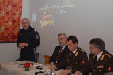 Am Sonntag den 07.01.2007 versammelten sich im Gasthaus Gassner 99 Kameraden der Freiwilligen Feuerwehr Waldhausen zur Vollversammlung. Kommandant BR Richard Sandhofer konnte sehr viele Ehrengäste dabei begrüßen. 99 Kameraden versammelten sich am Sonntag, den 07.01.2007 im Gasthaus Gassner zur Vollversammlung. Kommandant Brandrad Richard Sandhofer begrüßte dabei die Ehrengäste Oberbrandrat Josef Lindner, Fahnenpatin Margarete Reutner, Bürgermeister Franz Schaumüller, Vizebürgermeister Franz Gassner, Pfarrer Karl Wögerer, Ortsstellenleiterin des Roten Kreuz Fr. Hermine Kerschbaumer und Polizeikommandant Karl Aigner. Bei der Standeskontrolle wurde festgestellt, dass 99 Kameraden anwesen waren. Die Wehr zählt derzeit 139 Mitglieder, davon 104 Aktive, 17 Reserve und 18 Jungfeuerwehrmänner. Durch das Kommando und den einzelnen Fachbeauftragen wurden unseren Kameraden das Geschehen des vergangen Jahres 2006 präsentiert. Anhand von einer Präsentation mittels eines Video-Beamer wurden die Vorträge mit Fotos zusätzlich unterstrichen. EINSäTZE Die Freiwillige Feuerwehr Waldhausen musste im Jahr 2006 zu 1 Brandeinsatz und 32 technische Einsätze ausrücken. Die Wehr stand hier 1.107 Mannstunden im Einsatz. ÜBUNGEN Im vergangen Jahr 2006 wurden fast 800 Stunden für Übungen und Schulungen absolviert. Es wurden 10 Gruppenübungen, 1 Technische Hilfeleistungsübung, 6 Funkübungen, 14 Atemschutzübungen sowie eine Frühjahrsübung und eine Herbstübung absolviert. 3 Kameraden besuchen einen Lehrgang in der Landesfeuerwehrschule und 2 Kameraden legten den Funklehrgang ab. BEWERBE Weiters wurden für die Bewerbsvorbereitungen 910 Stunden und für die Grundausbildung der Feuerwehrmänner wurden 128 Stunden absolviert. Jeweils eine Gruppe konnte die Leistungsprüfung „Technische Hilfeleistung“ in Silber und Bronze ablegen. 1 Atemschutztrupp war beim Atemschutzleistungsprüfung in Bronze erfolgreich. Auch am Landeswettbewerb in Marchtrenk war eine Aktivgruppe und eine Jugendgruppe vertreten. Abschließend konnten 2 Mann das Funkleistungsabzeichen in Bronze absolvieren. ZEUGHAUS ZUBAU: Unser Gerätewart Amtswalter Kurt Blausensteiner stellte uns den Zeughauszubau vor. Baubeginn für den Zubau war der November 2005, wo noch die Pylone und die Grundplatte vor dem Winterbeginn fertiggestellt wurden. Im April 2006 wurden die Arbeiten wieder aufgenommen. Schon im Mai 2006 wurde der Rohbau fertiggestellt. Kurze Zeit später wurde der Dachstuhl aufgesetzt. Bis November 2006 wurden die Tore der Garagen eingebaut und bezugsfertig gemacht, damit die Fahrzeuge vor dem Winterbeginn eingestellt werden konnten. In den nächsten Wochen/Monaten wird noch der Innenausbau des Schulungsraumes fertiggestellt. EHRUNGEN UND BEFÖRDERUNGEN: Zum Oberfeuerwehrmann wurden befördert: Grünberger Gerald Hausleitner Lukas Mayrhofer Thomas Mutenthaler Patrik Palmanshofer Thomas Zum Löschmeister wurden befördert: Achleitner Leopold Berger Thomas Gstöttmaier Thomas Hofstetter Christian Leimer Siegfried Leonhartsberger Andreas (Ettenberg) 25 jährige Dienstmedaille verliehen: Zeh Franz 50 jährige Dienstmedaille verliehen: Gassner Johann (Dörfl) Kaislgruber Josef INTERNET Seit einem Jahr befindet sich die FF-Waldhausen unter www.ff-waldhausen.com im Internet. Einsatzberichte, Informationen und Neuigkeiten von Veranstaltungen, Adressen und Fotos können so von allen abgerufen werden. Im abgelaufenen Jahr besuchten 3.597 Personen die Internetseite, was einen täglichen Schnitt von 10 Zugriffen bedeutet. NEUES AUS DEM BEZIRK OBR Josef Lindner lobte die FF-Waldhausen für die geleistete Arbeit. Er berichtete von der Aktion "Sicherheitsgurt für die FF". Für den C-Führerschein gibt es eine Förderung im Rahmen des Bildungskontos. Unter dem Titel "Fit in der Feuerwehr" wird ein Staffellauf organisiert. Er dankte für die gute Zusammenarbeit mit den Kameraden Foto: W. Kerschbaumer Bericht: C. Hofstetter