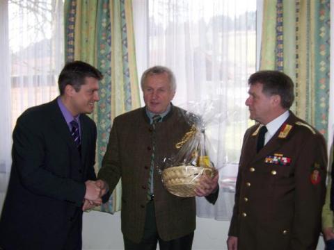 Am Sonntag den 25.02.2007 besuchte Landeshauptmann-Stellvertreter Franz Hiesl die Freiwillige Feuerwehr Waldhausen. Hr. Hiesl konnte in Funktion als Landesrat für die Bereiche Bau, Familie und Personal der Wehr für die Vorplatzsanierung beim Zeughaus EUR 5.000,-- an Kommandant Brandrad Sandhofer zusagen. An diesen Sonntagvormittag konnte der Kommandant der Freiwilligen Feuerwehr und seine Kommandomitglieder LH-Stv. Hiesl und die Gemeindevertretung der ÖVP, voran mit Vizebürgermeister Gassner begrüßen. Um einen Einblick in das bauliche Geschehen und der zur Verfügung stehenden Örtlichkeiten der Feuerwehr zu erlangen, führten die Feuerwehrkameraden die politische Vertretung durch das Zeughaus. In der Fahrzeughalle konnte Hr. Franz Hiesl die Gerätschaften und das Alarmierungssystem der Feuerwehr Waldhausen besichtigen. Im anschließenden Gespräch im Mannschaftsraum lobte Hr. Hiesl die Tätigkeiten und die Leistungen der Freiwilligen Feuerwehr Waldhausen. Für die dringend Notwendig gewesene Vorplatz- sanierung wurde hierbei als finanzielle Unterstützung an Kommandanten Brandrat Sandhofer die Zusage von EUR 5.000,-- durch LH-Stv. Franz Hiesl erteilt. Die Freiwillige Feuerwehr bedankt sich hierzu auf das herzlichste. Zum Abschluß übergab ÖAAB-Obmann Manfred Hinterdorfer als Dankeschön für den Besuch in Waldhausen einen Geschenkskorb an Hrn. Landeshauptmann-Stellvertreter.