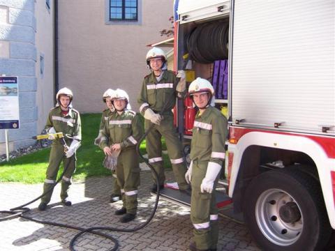 Eine groß angelegte Feuerwehrübung des Abschnittes Grein fand am Samstag den 21. April 2007 in Grein statt. Übungsannahme war Brand in der Hackgutanlage des Schlosses Greinburg, mehrere Personen wurden im Gebäude vermisst. Da sich das Feuer sehr rasch ausbreiten konnte, wurde die Alarmstufe 3 ausgelöst. Auch die FF-Waldhausen waren mit 9 Mann und TLF-A beteiligt. Auch die Freiwillige Feuerwehr Waldhausen beteiligte sich bei dieser groß angelegten Übung auf der Schloss Greinburg. Um 14 Uhr rückten 9 Kameraden zu dieser Alarmstufenübung aus. Am Einsatzort eingetroffen erhielten wir den Befehl, einen Atemschutztrupp zu stellen. Unser Trupp wurde dann zur Menschenrettung in den Waffenkeller eingeteilt. Weiters mussten wir mit einen Hochdruckrohr zum Innhof des Schlosses vorrücken. Nach ca. 2 Stunden konnte die Übung beendet werden. Die Kommandanten der einzelnen Feuerwehren erhielten in Anschluss an der Übung von Fr. Haas eine Führung durch das Gebäude damit Sie mit den Gegebenheiten besser vertraut werden. Anschließend fand eine Übungsnachbesprechung im Feuerwehrhaus Grein statt, wo auch die Mannschaft verpflegt nach der anstrengenden Übung verpflegt wurde. An der Übung nahmen 14 Feuerwehren mit insgesamt 113 Mann und 20 Fahrzeugen teil. Vom Roten Kreuz Grein waren 7 Mann mit 2 Fahrzeugen im Einsatz. Weitere Bilder und Informationen finden sie auf der Homepage der FF-Grein. www.ff-grein.com Fotos: OAW Hofstetter Karl Bericht: LM Hofstetter Christian