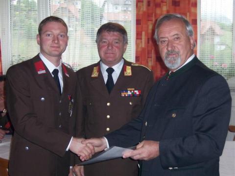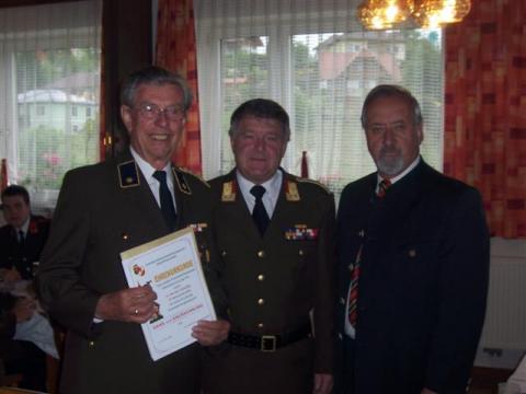 Am 06.05.2007 fand wieder die Folianiausrückung mit Kirchgang und darauf folgenden Versammlung statt. Bei dieser Versammlung fanden sich Bürgermeister Schaumüller, Vizebürgermeister Gassner und Fahnenpartien Fr. Reuthner ein. Es wurden wieder Ehrungen und Beförderungen durch BR Sandhofer Richard ausgesprochen. Begleitet von den musikalischen Klängen der Musikkapelle Waldhausen maschierten wir vom Schloßberg in die Stiftskirche ein. Anschließend wurde der Gottesdienst gefeiert, welche von der Musikkapelle Waldhausen gestaltet wrude. Im Anschluß der Messe trafen sich die Kameraden im Gasthaus Gassner. Dort wurden die Ehrungen für verdiente Feuerwehrmitglieder durchgeführt. JUGEND: 1. Erprobung ------------ Buchinger Christoph, Furchtlehner David, Katzengruber Richard, Lagler Sebastian 2. Erprobung ------------ Honeder Christian, Wagner Michäl 3. Erprobung ------------ Buchinger Günther, Gassner Thomas, Koch Patrik, Muttenthaler Mario, Palmetshofer Patrick 4. Erprobung ------------ Brunner Clemens, Furtlehner Phillipp, Gebetsberger Martin, Müller Michäl, Wimmer Christian AKTIV-MANNSCHAFT: Beförderung: ------------ Zum Hauptlöschmeister wurde Kamerad Docsek Franz ernannt. Dienstmedaillen: ---------------- Die 25 jährige Dienstmedaille erhielt HFM Aigner Erich. Die 40 jährige Dienstmedaille wurde an BM Brandstetter Karl überreicht. Die 60 jährige Diensturkunde erhielt E-AW Holzer Karl Viedienstmedaillen: ------------------- Berger Christian, Hofstetter Christian, Leonhartsberger Gerhard und Mutenthaler Josef erhielten an diesem Tag das Bezirks Verdienstzeichen in Bronze vom Abschnittskommandanten BR Sandhofer Richard und Bürgermeister Schaumüller Franz überreicht. Fotos: OAW Hofstetter Karl Bericht: LM Hofstetter Christian