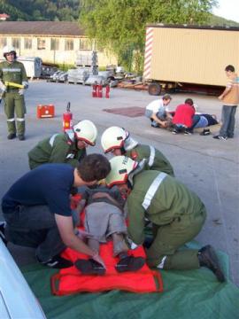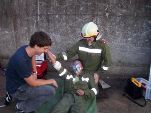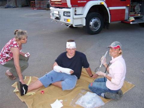 Das Rote Kreuz Waldhausen veranstaltete am 06.06.2007 eine Übung als Vorbereitung für Ihre Bewerbsgruppen. Zu dieser Übung wurde auch die Freiwillige Feuerwehr Waldhausen eingeladen um einsatznahe Bilder und die Zusammenarbeit beider Blaulichtorganisationen darzustellen. Übungsleiter Zeh Franz erarbeitete für diese Übungen mehrere Einsatzbeispiele für die Teilnehmer. Zürst wurde eine Menschrettung nach einen Verkehrsunfall und die Erste Hilfe in Angriff genommen. Dabei wurden die Kräfte des Roten Kreuzes sehr gefordert, da sie mit mehreren verschieden Verletzungen konfrontiert wurden. Ein weiters Übungsszenario war eine Staubexplosion mit zwei Verbrennungsopfern. Um Einsatznahme Bedingungen zu schaffen, griff hierbei die Feuerwehr mittels Handfeuerlöscher ein, um das kontrolliertes Feuer in einer Wanne zu löschen. Danach gab die Wehr den Übungsbereich frei, damit die RK-Kräfte ihre Tätigkeiten durchführen können. Zum Abschluss wurde noch ein Wohnungsbrand mit zwei verletzte Personen und einer Rauchgasvergiftung angenommen. Bei dieser Übung konnten die jungen Mitglieder der Freiwilligen Feuerwehr einiges an Erfahrungen mit der Zusammenarbeit mit dem Roten Kreuz und bei der Ersten Hilfe bzw. bei der Menschenrettung sammeln.