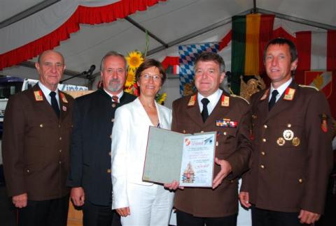 Am Sonntag den 22.07.2007 wurde der neue Zubau des Feuerwehrhauses gesegnet. Zudem konnte die Wehr auch das 125 jähriges Bestandsjubileum feiern. Viele Ehrengäste sowie die Gemeindebürger/innen aus Waldhausen nahmen hierbei teil. Schon am frühen Morgen wurden die Nachbarfeuerwehren und die Partnerfeuerwehren aus Deutschland am Marktplatz in Waldhausen zu diesem Fest begrüßt. Anschließend zog der Festzug mit der musikalischen Untermalung durch die Musikkapelle Waldhausen zum Feuerwehrhaus ein. Dechant Karl Wögerer gestaltete die Festmesse im Feuerwehrhaus und nahm die Segnung des Feuerwehrhauses vor. Als Anerkennung überreichte er Kommandant Brandrat Richard Sandhofer ein Florianrelief. Bürgermeister Franz Schaumüller hielt am diesem Tag die Festrede und gratulierte zum 125. Geburtstag der Wehr und hob die Leistungen beim Zeughausbau hervor. Auch Landesbranddirektor Stellvertreter Fritz Hauer, Ltg. Abg. Gerti Jahn und NR Nikolaus Prinz stellten sich bei diesem Jubiläum mit der Segnung des Zeughauses ein. Auch Sie fanden lobende Worte für die Tätigkeiten der Feuerwehrmitglieder und gratulierten zum Zubau des Feuerwehrhauses. Kommandant Brandrat Richard Sandhofer hob in seiner Ansprache Zeugwart Amtswalter Kurt Blauensteiner besonders hervor, der mit seinen Kameraden über 1.000 Stunden am Zubau tätig war. Lobende Worte hatte er auch für sein Kommando, für alle seine Helfer beim Zubau und für die gesamte Festmannschaft sowie für die Firmenvertreter bereit. Als Anerkennung überreichte Bezirkskommandant Josef Lindner unseren Kommandanten BR Sandhofer Richard die Bezirksverdienstabzeichen in Gold. Weiters dankte er der FF-Waldhausen für die vielen Einsatz- und Arbeitsstunden im Dienste der Freiwilligen Feuerwehr. Abschließend vom Festakt wurde an alle Fahnen der Wehren, zur Erinnerung ein Fahnenband von der Fahnenpatin Margarete Reutner überreicht. Die Gestaltung des Festaktes und den anschließenden Frühschoppen übernahm die Musikkapelle Waldhausen unter der Leitung des Ehrenkapellmeisters Karl Grufeneder. Für gute Stimmung beim Frühschoppen sorgte der Humorist „Sunnseitn Hansl.“ Zudem wurde an diesem Tag auch ein Tag der offenen Tür abgehalten. Hierbei konnte die Waldhausener Bevölkerung die Gerätschaften und die Räumlichkeiten der FF-Waldhausen in Augenschein genommen werden. Das Platzangebot für die Freiwillige Feuerwehr Waldhausen entsprach bereits seit längerer Zeit nicht mehr den gestiegenen Anforderungen an die Wehr. Seit längerer Zeit stand die Vision im Raum, eine neue, zentrale Ausbildungsstätte und Unterkunft der Fahrzeuge an einen Platz vereint, zu errichten. 1999 erfolgte der Ankauf des damaligen ESG-Gebäude (Markt 177) in Waldhausen und des entsprechenden Grundstückes. 2000 wurden die ersten Umbauarbeiten vollzogen, um Schulungen durchführen zu können und den Großteil des Fuhrparks unterzubringen. In den darauffolgenden Jahr standen bereits intensive Planungs- und Ausschreibungsaktivitäten auf der Tagesordnung. Im Frühjahr 2005 erfolgte der Baubeginn für die Schul- und Garagenbauten sowie für den Vorplatz und Schlauchturm. Mit Ende 2006 konnte der Großteil des Zubaues fertig gestellt werden. Beginn 2007 wurde noch unser Schulungsraum im Obergeschoss des Zubaues fertiggestellt und der Schriftzug aufgebracht. Dieser Zubau verdeutlicht eindrucksvoll die Leistungen der am Bau beschäftigten Firmen sowie der vielen freiwillig geleisteten Stunden der Feuerwehrmitglieder. zusätzliche Bilder unter www.ff-saxen.com