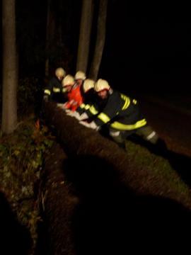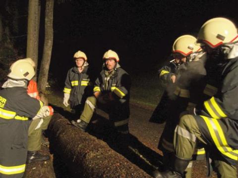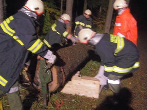 Gruppe 5 (Palmetshofer) übten am Samstag Abend den 20.10.2007 den Ernstfall! Eine Person ist beim Güterweg Guster unter einen Baumstamm geraten. Mit dem Tankwagen und 9 Mann rückte die Gruppe aus. Der eingeklemmte "Flori" (selbstgebaute Übungspuppe) musste zwischen zwei Baumstämmen befreit und versorgt werden. Mittels technischen Gerätschaften wurde mit der "Menschenrettung" begonnen. Mit dem hydraulischem Spreitzer wurde das zurückrollen des Baumstammes auf unserem "Flori" verhindert. Um die Puppe aus ihrer misslichen Lage zu befreien, wurde mit der 5to Winde (Zahnstangengewinde) der Baumstamm angehoben. Zeitgleich wurde ständig untergeboltzt, damit dem Baum nicht abrutschen konnte. Da sich dieses Übungszenario in den späten Abentstunden eingeplant wurde, musste ebenfalls gegen die Dunkelheit angekämfpt werden. Es wurde die Rundumbeläuchtung des Tankwagens aktiviert und ebenfalls der Lichtmasten zu je 4x 1000 Watt auf den Übungsbereich gerichtet. Zusätzlich wurde der Güterweg für die Einsatzkräfte abgesichert. Nach ca. 1,5 Stunden konnte die Übung erfolgreich beendet werden und die Einsatzbereitschaft wurde wieder hergestellt. Übungsverantwortlicher: OAW Palmetshofer Johann . . Fotos: JFM Furtlehner Philipp Bericht: LM Hofstetter Christian