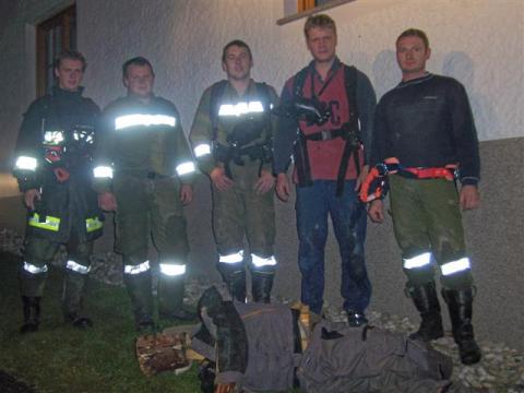 Flori im Schwemmgraben verunglückt! So lautete die Übungsannahme für die Atemschutzübung, die am 25.09.2008 stattfand. 6 Kameraden und unser Flori (Holzpuppe) nahmen an dieser Übung teil. Unter schwierigen Bedingungen musste Flori gerettet werden. In den späten Abendstunden des 25.09.2008, wurde die Atemschutzübung mit dem Thema – Flori im Schwemmgraben verunglückt – durchgeführt. Es wurde angenommen, dass unser Flori bei Reinigungsarbeiten verunglückt ist. Da mit giftigen Gasen gerechnet werden musste, wurde der Atemschutz zum Einsatz gebracht. Zürst musste das Gerät schnell und ordnungsgemäß aufgenommen werden. Danach wurde der schnellste Zugang zur Holzpuppe gesucht. Nach der Erkundung wurde der Einstieg mittels einer Leiter in die Schwemmgrube gewählt. Da sich diese „Grube“ in mehre Kammern teilte, und sich der Flori in der letzten Kammer befand, mussten unsere Kameraden mit den Atemschutzgeräten 2x durch schmale Verbindungstunnels kriechen, um die Holzpuppe zu erreichen. Bei dieser Übung konnten unsere Kameraden wieder einmal Ihr Wissen und Geschick beweisen. Nach Beendigung der Übung standen die Strapazen bei manchen Kameraden ins Gesicht geschrieben. Abschließend wurden die Gerätschaften wieder aufgerüstet, um für eventülle Einsätze wieder gerüstet zu sein. Die Freiwillige Feuerwehr Waldhause bedankt sich bei der Familie Kloibhofer vlg Hoader für die zur Verfügungstellung der Örtlichkeit!