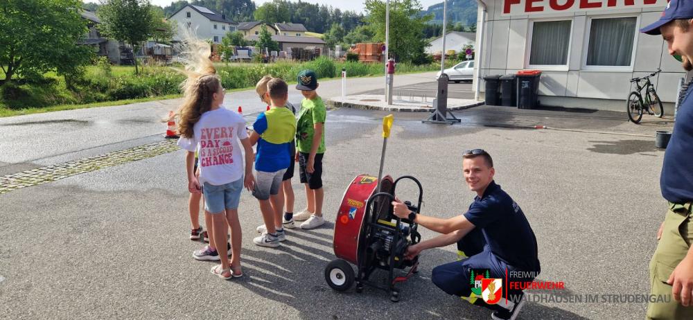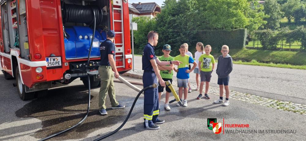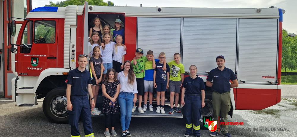 Besuch der 4. Klassen Volksschule Am 21.06.2024 waren erneut die 4. Klassen der Volksschule Waldhausen bei uns zu Besuch! Die Kinder konnten an diesem Vormittag viele Eindrücke über die Freiwillige Feuerwehr sammeln und so einiges ausprobieren. Bei einem Stationsbetrieb wurde ihnen Interessantes über die Einsatzbekleidung, die Feuerwehrfahrzeuge und die Gerätschaften erzählt. Selber ausprobieren konnten sich die Kinder später bei der Kübelspritze, am HD-Rohr, bei den Hebekissen und am hydraulischen Rettungsgerät. Zum Abschluss durfte eine Fahrt mit dem Feuerwehrauto nicht fehlen!