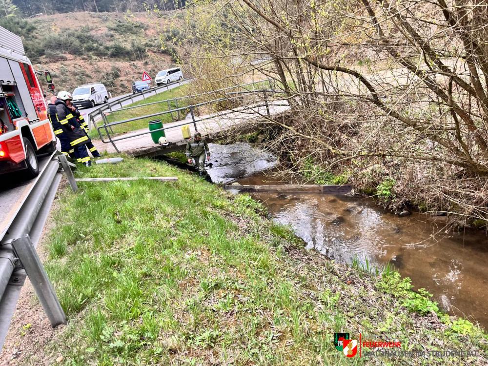 Am 14. April wurden wir um 16:58 Uhr zu Verkehrsunfall Aufräumarbeiten "PKW im Bach" alarmiert. Als Ersteintreffender am Einsatzort, sperrten wir umgehend die Straße ab und regelten den Verkehr. Das Rote Kreuz Waldhausen traf unmittelbar nach uns ein und übernahm sofort die Betreuung des verletzten Lenker, welcher sich selbstständig aus dem Fahrzeug befreit hatte. Wir stellten fest, dass eine geringe Menge an Betriebsmittel aus dem Fahrzeug floß und so errichteten wir umgehend eine Ölsperre über den Dimbach. Um die Ausbreitungsgefahr vollständig zu verhindern zogen wir den PKW möglichst rasch aus dem Bach. Anschließend unterstützten wir den örtlichen Abschleppdienst beim Verladen des Fahrzeuges und verständigten die Straßenmeisterei. Eingesetzte Fahrzeuge: KDOF-A LFB-A2 TLF-A2000 Eingesätzte Kräfte: FF Waldhausen RK Waldhausen 2x Polizei Grein Straßenmeisterei Grein