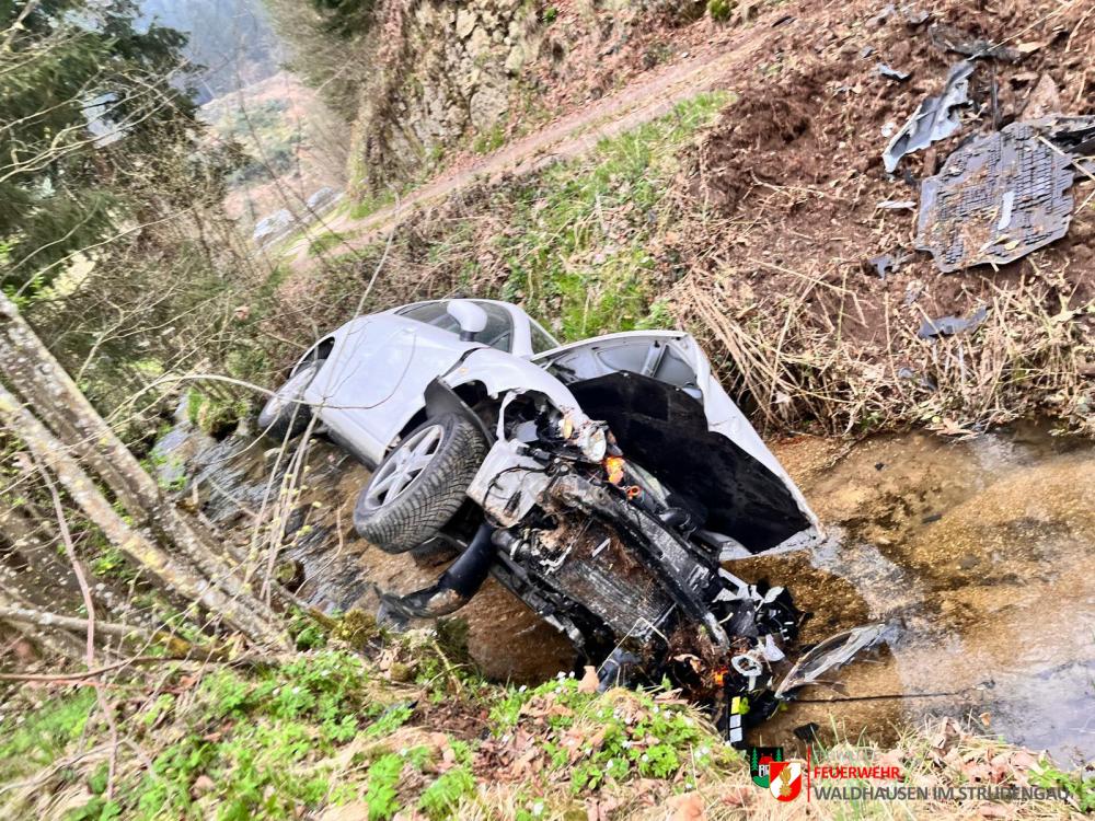 PKW bei L1436 Langenbachstraße im Bach gelandet...