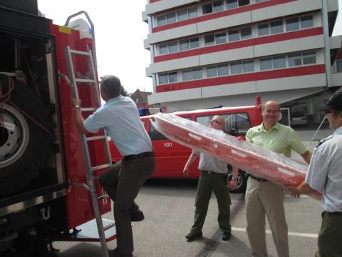 Am Montag den 15.07.2013 haben das Kommando der FF-Waldhausen , BGM Franz Gassner und Al Franz Geirhofer das neue LFB-A2 von der Firma Rosenbauer entgegengenommen. Bei einer praktischen und umfangreichen Einschulung konnten wir uns mit dem neuen Mercedes Benz LFB-A2 vertraut machen und die diversen Gerätschaften ausprobieren. In den folgenden Tagen wurden die Kameraden der FF-Waldhausen durch AW Alexander Kerschbaumer auf das neu in Dienst gestellten Feuerwehrauto eingeschult. Einen herzlichen Dank an BGM Franz Gassner, der uns mit einer neu gekauften Schaufeltrage für das Fahrzeuge überraschte. DANKESCHÖN