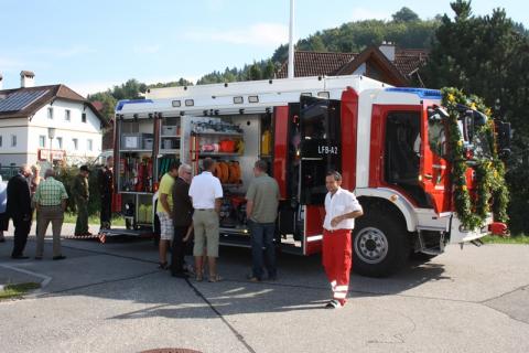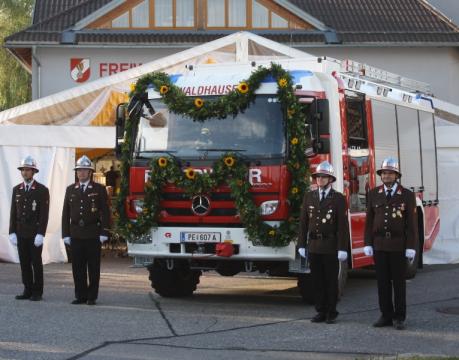 Am Sonntag den 08.09.2013 wurde das neue Einsatzfahrzeug LFB-A2 gesegnet. An dem Festzug und der anschließenden Festmesse, nahmen zahlreiche Ehrengäste ,Feuerwehren aus dem Abschnitt Grein, dem benachbarten Gemeinden Niederösterreichs und die Partner -Feuerwehr aus Waldhausen und Kirchstätt aus Bayern teil. Der Festzug wurde von der Musikkapelle St. Nikola vom Markplatz zum Feuerwehrhaus gespielt, wo Feuerwehrkurat Pfarrer Mag. Johann Fehrerhofer die Heilige Messe hielt. Nach der Festmesse wurden den Feuerwehren das Fahnenband von unsrer Fahnenpatin Margarete Reutner überreicht. Bürgermeister Franz Gassner, LBD-STV Robert Mayer und NR Bgm. Nikolaus Prinz Gratulierten der Feuerwehr Waldhausen zum neuen Feuerwehrauto und dankten für die erbrachten Leistungen. Ebenfalls waren Ltg. Abg. Gerti Jahn, Ltg. Abg. Bezirksschulinspektorin Notburga Astleitner, Ltg. Abg. Alexander Nerat , Gemeindearzt Dr. Franz Eder, Bezirkshauptmann Mag. Werner Kreisl, Amtsleiter Franz Geyerhofer und die Vertreter des Gemeinderat Waldhausen bei der Fahrzeugsegnung anwesend. Als Anerkennung überreichte Brandinspektor Richard Sandhofer, Landesfeuerwehrkommandant Stellvertreter Robert Mayer und Bezirkshauptmann Werner Kreisl unseren Kommandanten Johann Palmetshofer das Bezirksverdienstabzeichen in Silber. Auch wir gratulieren unseren Kommandanten!