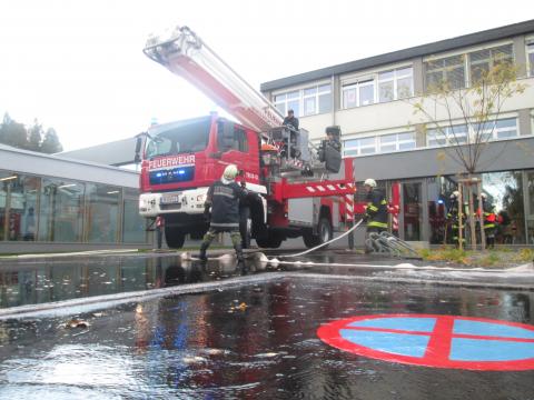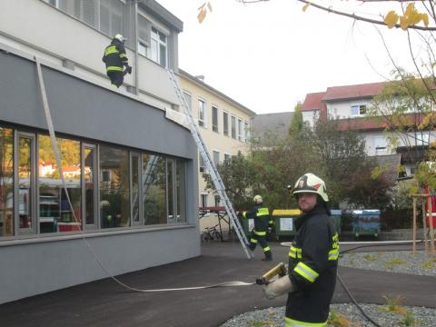 Am Samstag den 12.10.2013 fand die Herbstübung der FF- Waldhausen in der Mittelschule Waldhausen statt. Die FF-St. Nikola und FF-Dimbach sowie das Hubrettungsfahrzeug – Bad Kreuzen beteiligten sich bei dieser Herbstübung. Ebenfalls anwesend waren BGM Franz Gassner und Abschnittskommandant BR Richard Sandhofer. Folgende Situation wurde angenommen: Brand in der Mittelschule Waldhausen mit eingeschlossenen Schülern im 2. Stock. Weil das Verlassen der Klasse für die Schüler über das Treppenhaus nicht mehr möglich war, mussten sie mittels Hubrettungsfahrzeug gerettet werden. Die FF-St. Nikola und Dimbach legten eine Zubringerleitung und schützten die Neue Volksschule und Musikschule vor dem Feuer. Die FF-Waldhausen stellten einen Atemschutztrupp zur Brandbekämpfung und versorgte den Hub-Bad Kreuzen mit Wasser. Nach erfolgreichem Abschluss der Übung, wurden alle Beteiligten zu einer Jause eingeladen. Die Feuerwehr Waldhausen möchte sich bei BGM Franz Gassner und Herrn Harald Berger von der Oberösterreichischen Versicherung für die Getränkespende recht herzlich bedanken.