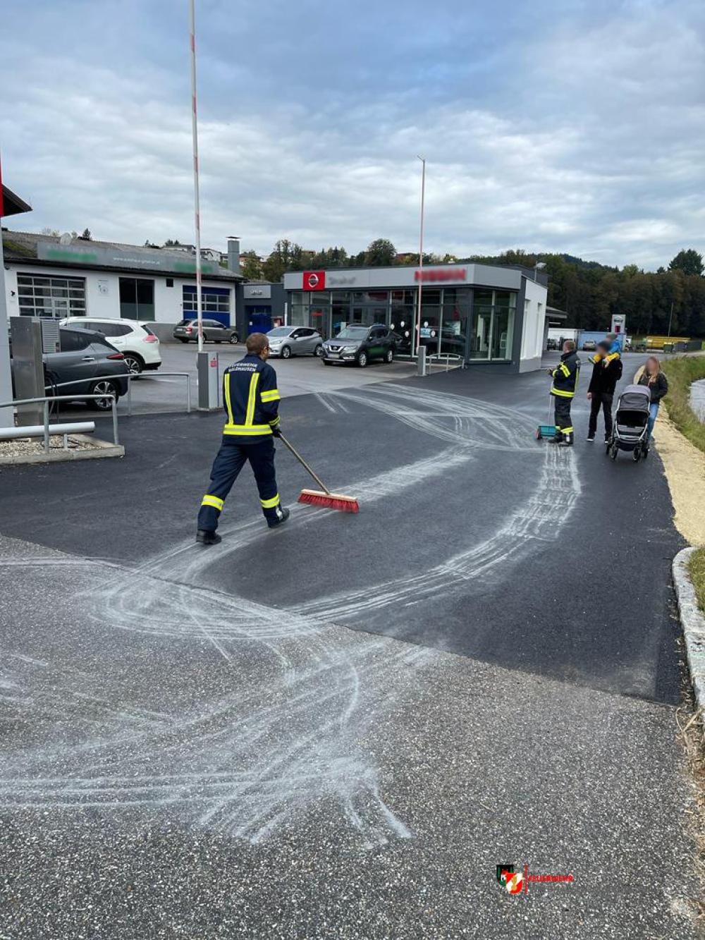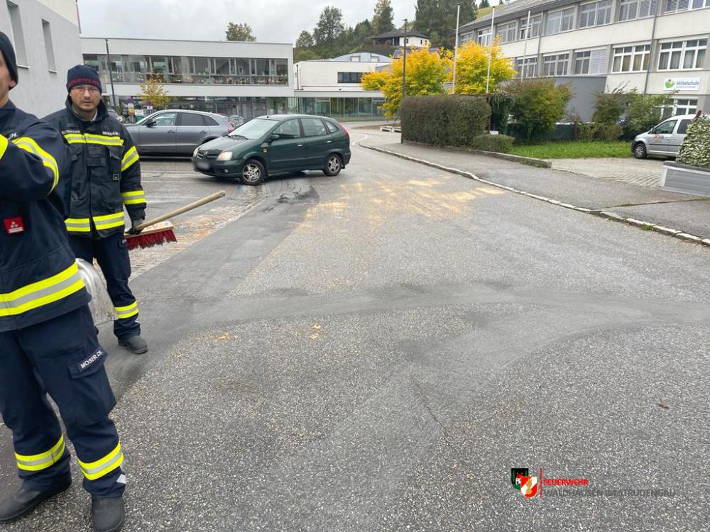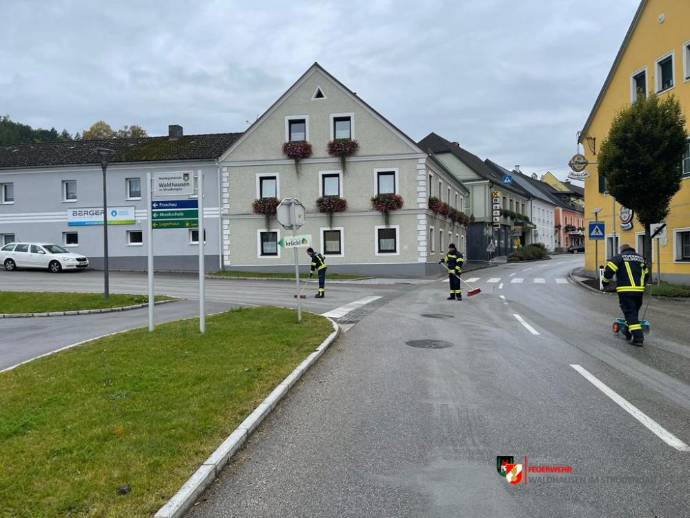 Um kurz vor 10:00 wurden wir über Treibstoffaustritt, welcher im gesamten Ortsgebiet und Güterweg Sattlgai festgestellt werden konnte, informiert. 4 Mann machten sich daher auf den Weg um den ausgelaufenen Diesel zu binden.