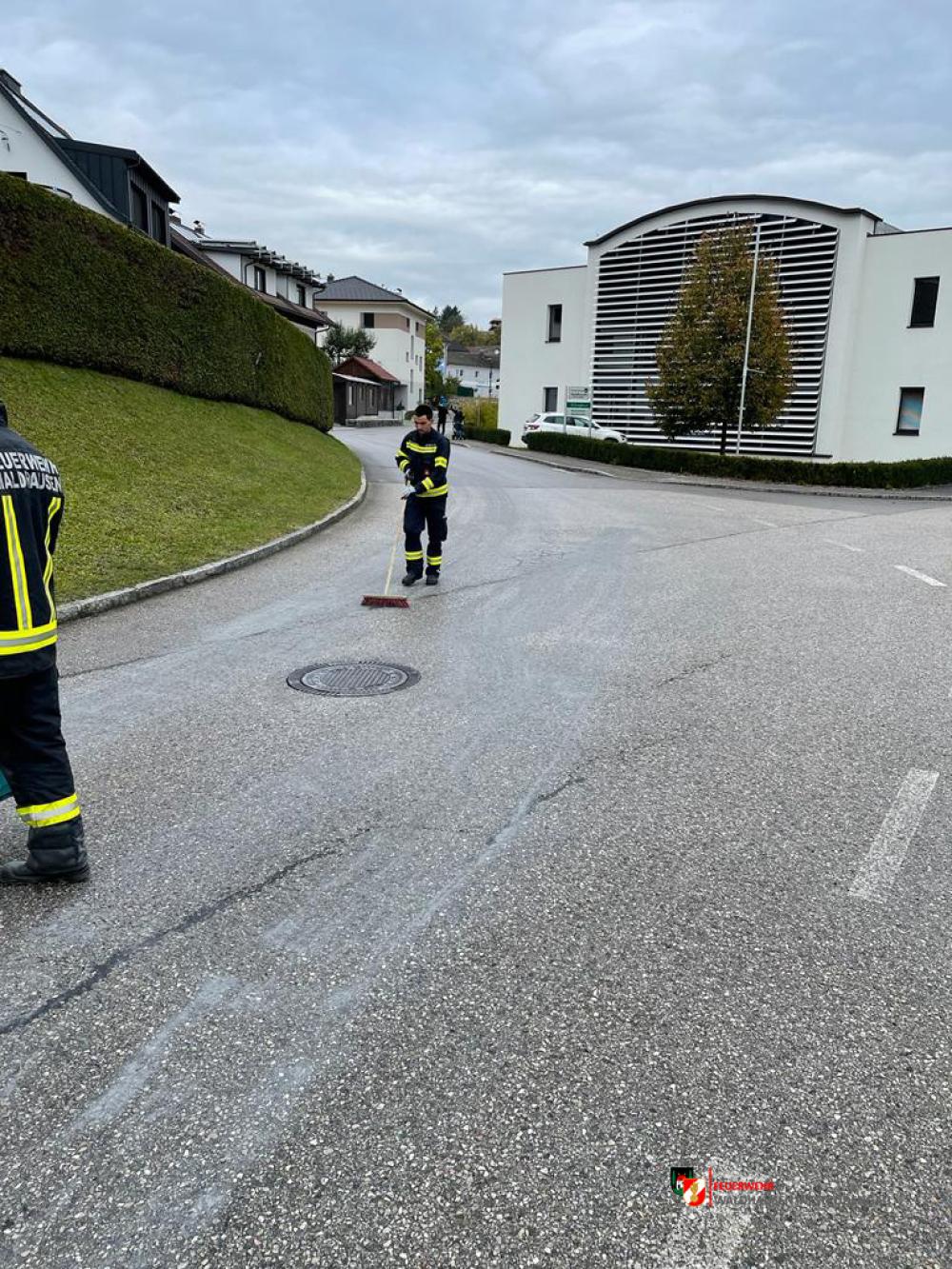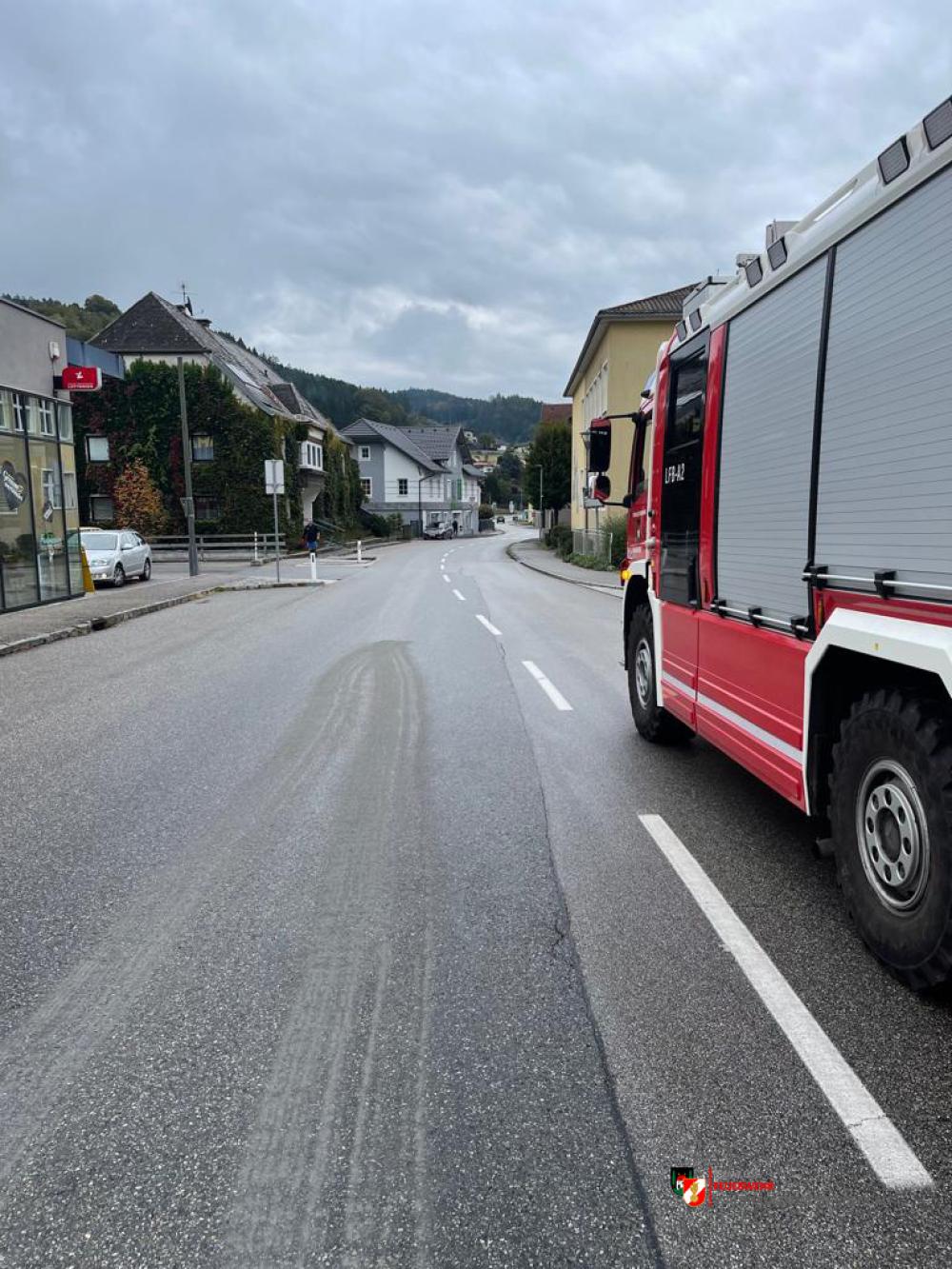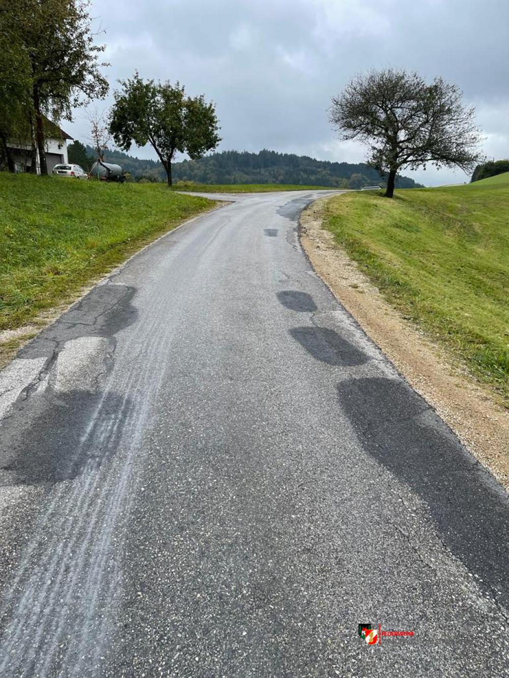 Um kurz vor 10:00 wurden wir über Treibstoffaustritt, welcher im gesamten Ortsgebiet und Güterweg Sattlgai festgestellt werden konnte, informiert. 4 Mann machten sich daher auf den Weg um den ausgelaufenen Diesel zu binden.