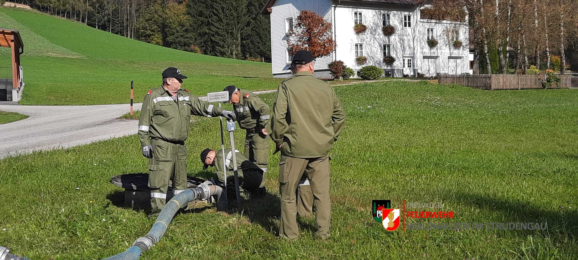 Am 18. Oktober fand die Übung der Gruppe 1, sprich die Älteste unserer Feuerwehr, statt. Unsere Erfahrenen Kameraden haben es sich zur Aufgabe gemacht, die Löschwasserbehälter zu überprüfen und zu pflegen. Sie stellen somit die flächendeckende Löschwasserversorgung in unserer Gemeinde sicher. Denn in unserem zerstreuten Gemeindegebiet, von 47 Quadratkilometer, ist die Wasserversorgung für einen Löschangriff durch natürliche Wasservorkommen, teils nicht möglich. Daher verfügt unsere Gemeinde über 16 Löschwasserbehälter und 13 Hydranten. Vielen Dank für eure jahrelange tatkräftige Arbeit welcher ihr im Dienst der Feuerwehr verrichtet!