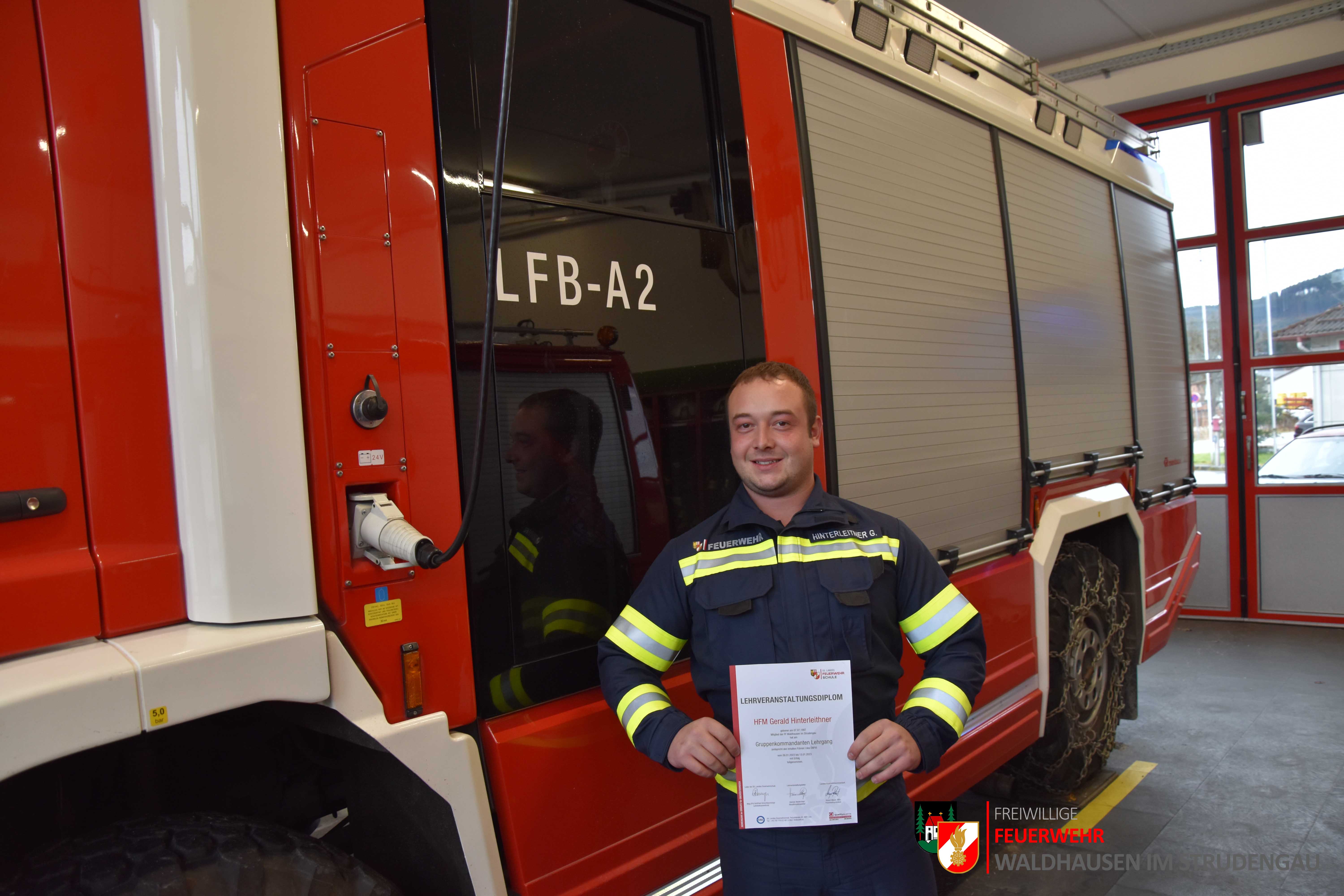 In der Woche vom 09.01. bis zum 13.01. fand ein Gruppenkommandantenlehrgang in der Landesfeuerwehrschule statt. HFM Hinterleithner Gerald nahm daran erfolgreich teil. Herzlichen Glückwunsch zum erfolgreichen Abschluss von Führen 1!