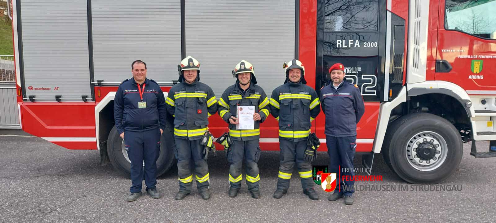 Bei der Atemschutzleistungsprüfung in Arbing konnte ein Trupp der FF-Waldhausen das Leistungsabzeichen der Stufe Bronze erlangen. Herzlichen Glückwunsch an HFM Ballwein Christoph, HFM Hinterleithner Gerald und BI Palmetshofer Stefan!
