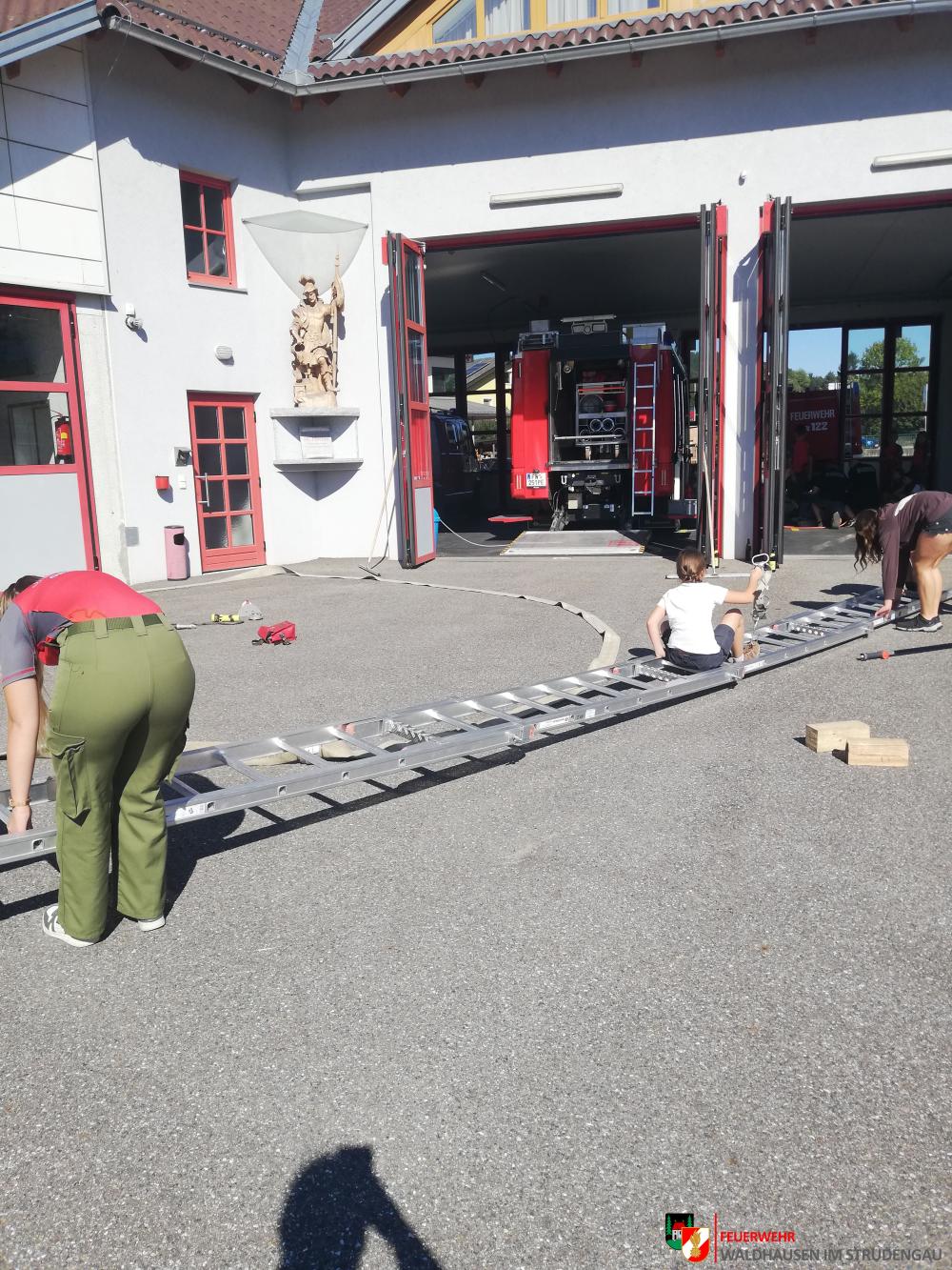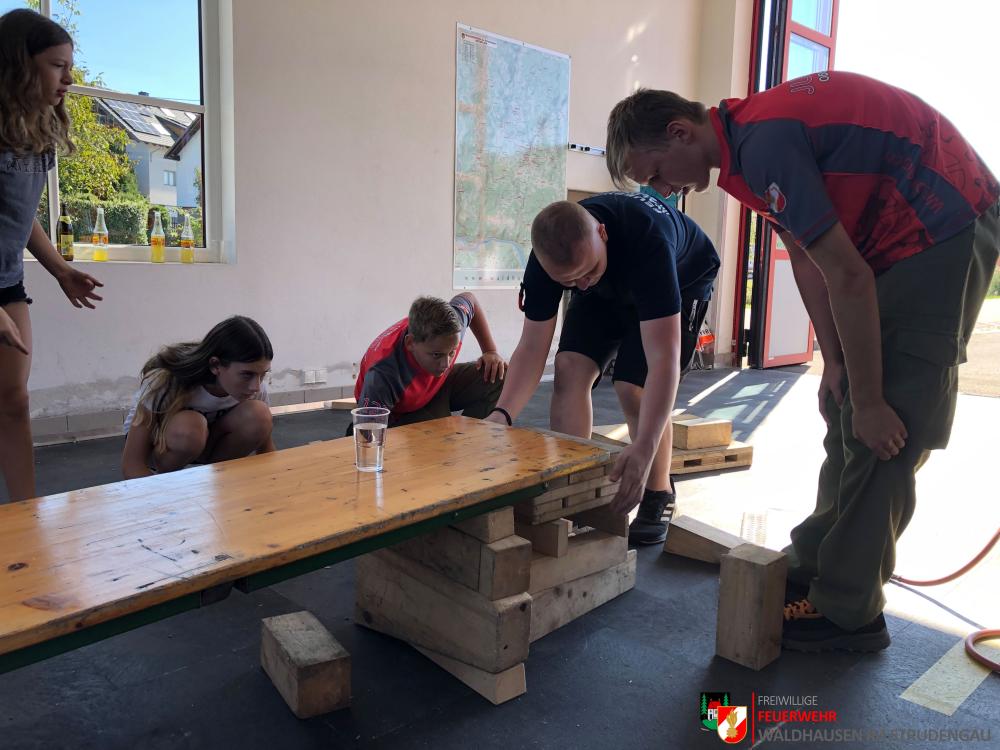 Am 16. September traf sich die Jugendfeuerwehr erstmals nach der Sommerpause zu einer gemeinsamen Übung. Die 20 Jugendfeuerwehrmitglieder konnten bei drei Stationen ihr Geschick, ihren Teamgeist und ihr Wissen unter Beweis stellen. Die erste Aufgabe bestand darin, einen liegenden Tisch mithilfe der Hebekissen und dem Unterbaumaterial so weit aufzuheben, dass die Beine des Tisches aufgeklappt werden können. Danach galt es verschiedene Geräte unter Zuhilfenahme aller möglichen Hilfsmittel, welche wir in unseren Fahrzeugen mitführen, aus der "Gefahrenzone" zu bringen, ohne diese zu betreten. Zu guter Letzt mussten die Jugendfeuerwehrmitglieder nach einem Fahrradunfall Erste Hilfe leisten. Vielen Dank an alle, die dabei waren!