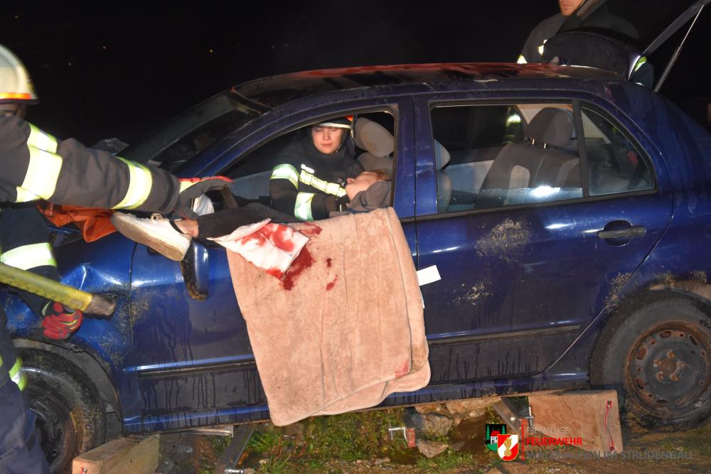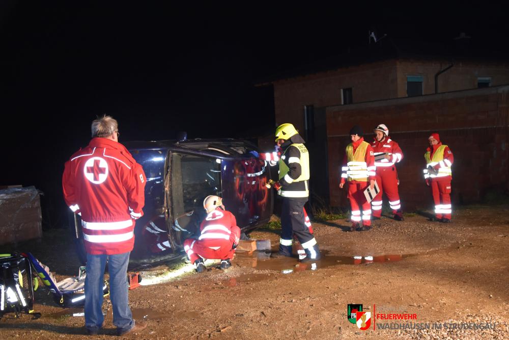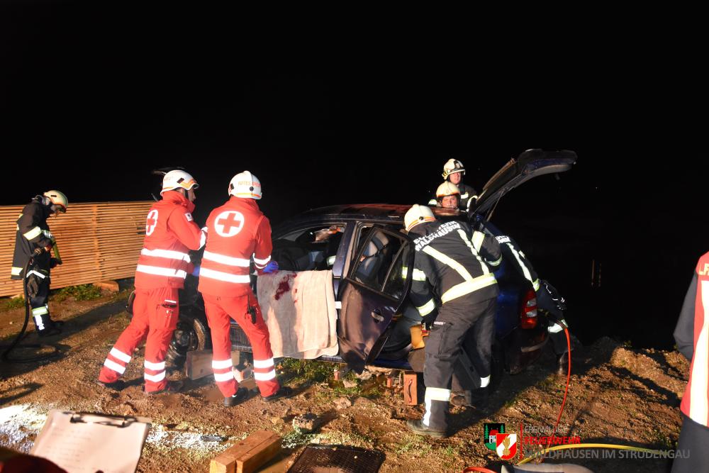 Übungsannahme: Verkehrsunfall eingeklemmte Person, mehrere Personen eingeklemmt. In der Marktblicksiedlung lag auf einer Kreuzung der betroffene PKW in der Seitenlage. Gemeinsam mit der Rettung konnten die Personen erfolgreich gerettet und für die weitere Versorgung im Krankenhaus vorbereitet werden. Vielen Dank an die RK Ortsstelle Waldhausen für die Zusammenarbeit und wir sind uns sicher, dass wir auch in Zukunft bei Ernstfällen gemeinsam für unserer Bevölkerung für die beste Sicherheit sorgen können.