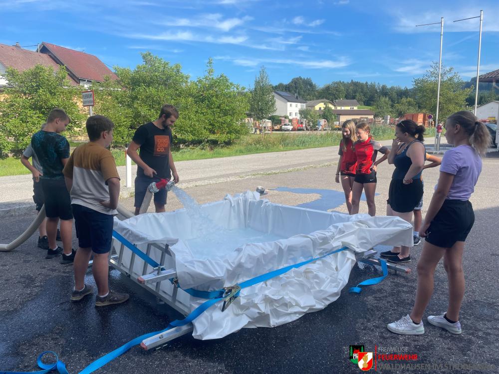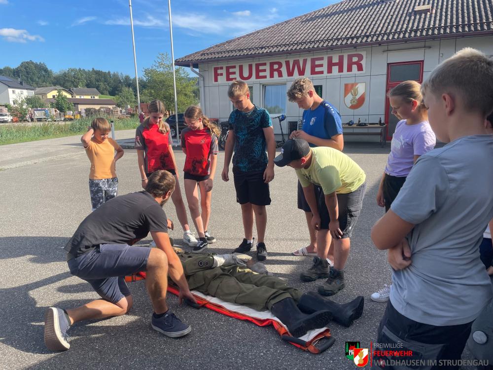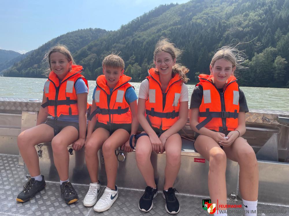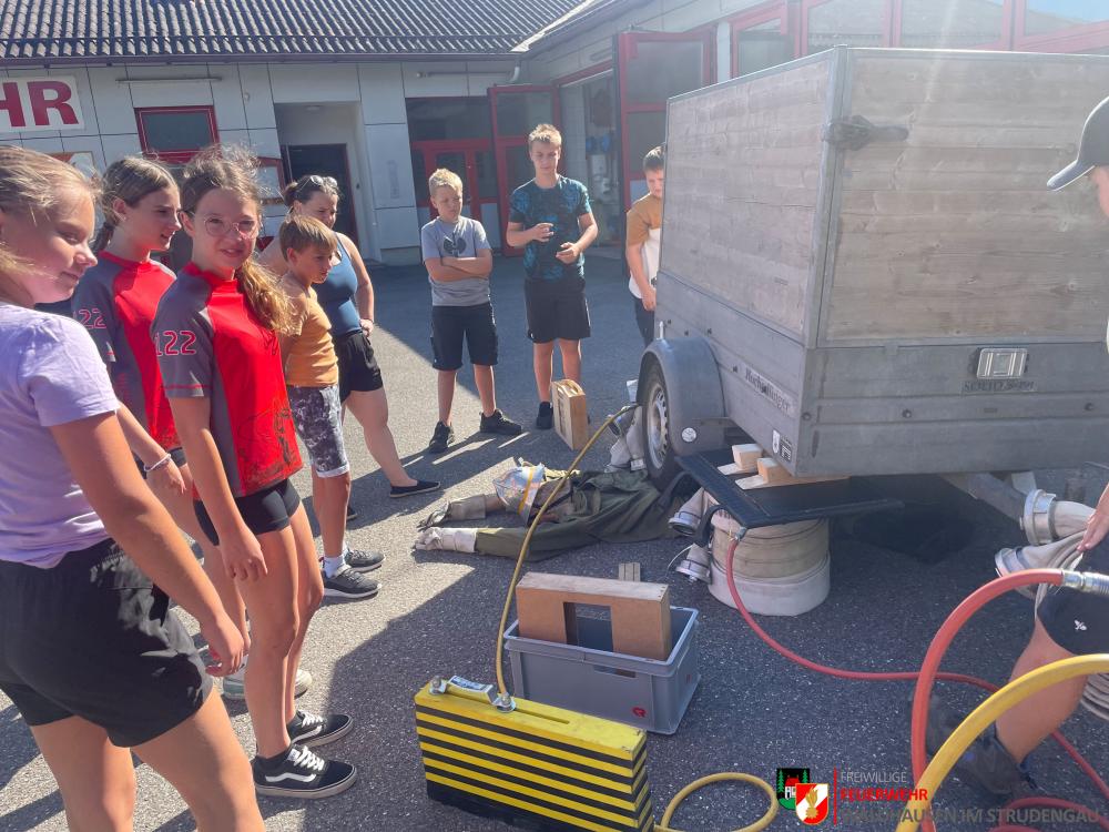 Spannend bleibt es für unsere Kleinen in der Feuerwehr auch während der Sommerferien. An diesem Wochenende samt Übernachtung im Schulungssaal der Feuerwehr, konnten unsere Jugendfeuerwehrmänner und -frauen an spannenden Aktivitäten wie Bootfahren mit der FF Grein, Fußballspielen und einer Feuerwehr Olympiade teilnehmen. Am Sonntag galt das Grillen mit der Familie unserer jungen Mitglieder, als Abschluss für dieses tolle Wochenende. Außerdem wurden in den Sommermonaten zwei Aktivübungen veranstaltet, bei denen die Jugendlichen erste praktische Einblicke in den Aktivstand erhalten haben. So wurde mit den verschiedenen wasserführenden Geräten, sowie dem Feuerlöscher gearbeitet. Bei der zweiten Übung konnten die Jugendlichen die Hebekissen kennenlernen und ein Auffangbehälter mit Steckleitern wurde gebaut. Dieser eignete sich natürlich bestens für eine Abkühlung an diesen heißen Tagen. Damit bleibt uns für diese Bewerbssaison nur noch Danke an unsere fleißigen kleinen Florianis zu sagen, sowie unseren Jugendfeuerwehr-HelferInnen unter der Leitung von der Fachbeauftragten für Feuerwehrjugend HBM d.F. Zeh Katharina herzlichst zur tollen Nachwuchsarbeit zu gratulieren!