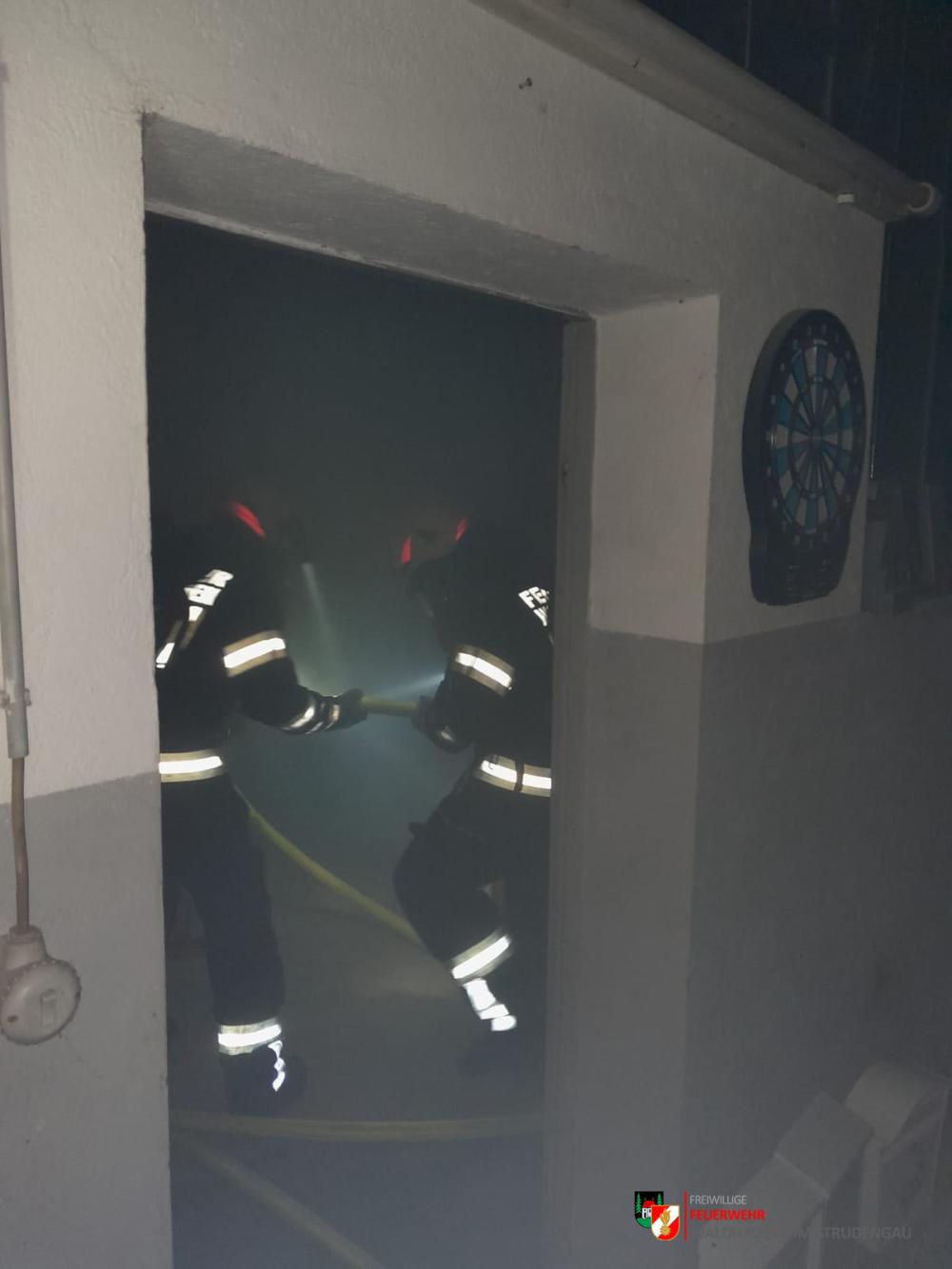 Atemschutztrupps in stark verrauchtem Gebäude im Einsatz...