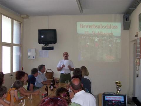 Nach dem Landeswettbewerb in Marchtrenk ist nun etwas Ruhe im Bewerbswesen eingetreten. Die Feuerwehrjugend von Waldhausen nützen die Gelegenheit, am Samstag den 15.07.2006 eine Bewerbsabschluss mit den Eltern zu Veranstalten. Am Samstag den 15.07.2006 fand im Feuerwehrhaus Waldhausen der Bewerbsabschluss der Feuerwehrjugend von Waldhausen mit Ihren Eltern statt. Unser Jugendbeauftragter OAW Palmetshofer Franz berichtete über die Veranstaltungen und Bewerbsbesuche der Feuerwehrjugend im vergangen Jahr bzw. Monaten. Mit Fotos wurde der Bericht unterstrichen, damit die Eltern einen besseren Einblick in die Tätigkeit der Feuerwehrjugend von Waldhausen erhielten. Auch Brandrad Sandhofer Richard, Kommandant der Wehr, bedankte sich bei den Eltern, die die Feuerwehrjugend bestens unterstützen und die nötige Verständnis zeigten. Weiters bedankte sich BR Sandhofer bei den Feuerwehrjugend und ihren Jugendbetreuern. Abschließend bad er wiederum um zahlreiche Teilnahme an den Übungen und Veranstaltungen der Feuerwehr Waldhausen. Im zweiten Teil des Bewerbsabschlusses wurde den Eltern eine Vorführung eines Bewerbes der Feuerwehrjugend durch den Nachwuchs gezeigt. Zürst ging es zur Bahn. Hier zeigte die Feuerwehrjugend ihr Können. Danach wurde der Staffellauf demonstriert. Hier sind einige Hindernisse sowie verschiedene Tätigkeiten durchzuführen. Nach dieser Vorführung lief der Bewerbsabschluss der Jugend zum gemütlichen Teil über. Die Eltern und die Jugend konnten sich Speis und Drank stärken.